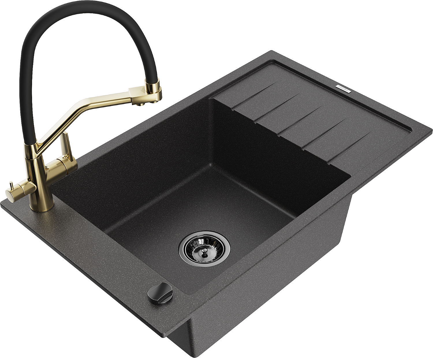 Mexen Elias dřez granitový 1-komorový s odkapávačem a kuchyňskou baterií Duo, černý skvrnitý - 6511-76-671701-57-B