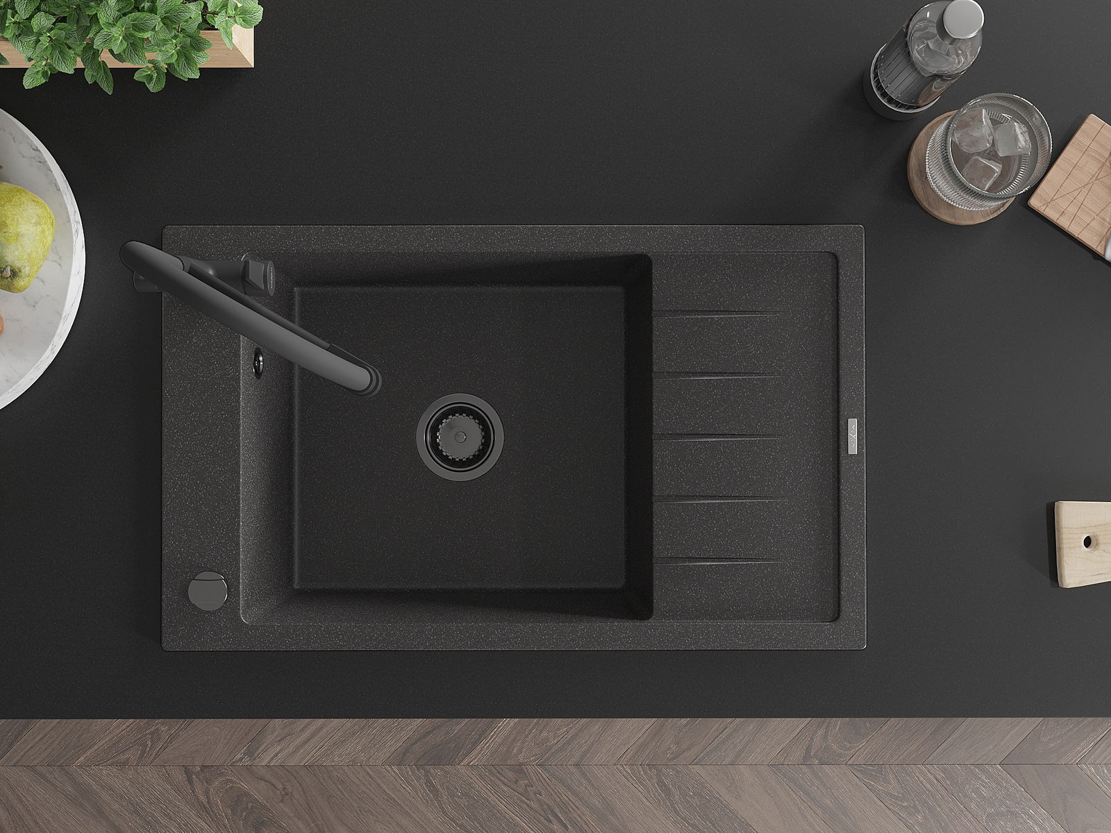 Dřez byl vyroben z vysoce kvalitního granitu. Představuje elegantní a především praktický doplněk každé kuchyně, bez ohledu na její styl. Vysoká kvalita a trvanlivost granitu zajišťují dlouholeté používání.