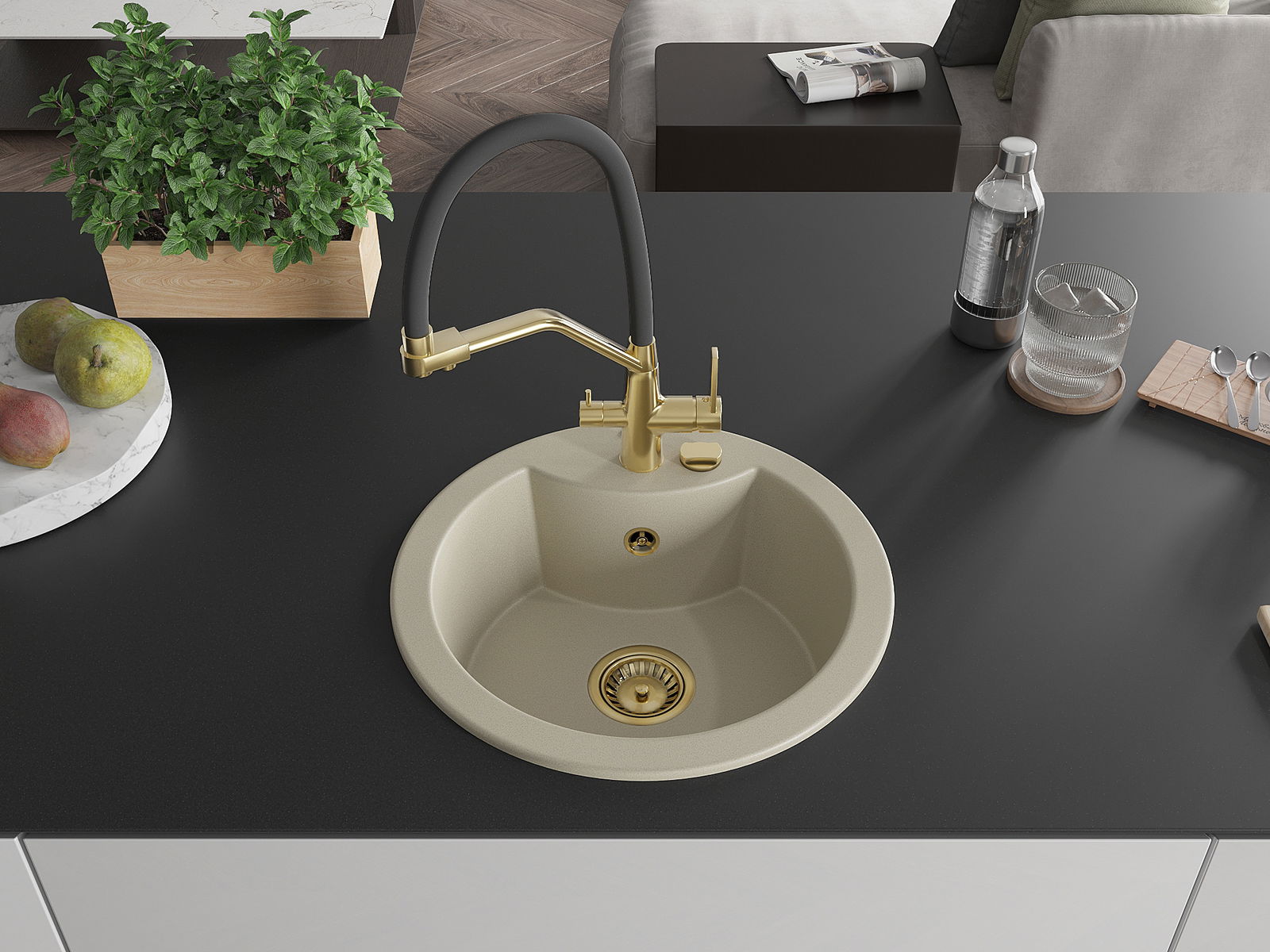 Dřez byl vyroben z vysoce kvalitního granitu. Představuje elegantní a především praktický doplněk každé kuchyně, bez ohledu na její styl. Vysoká kvalita a trvanlivost granitu zajišťují dlouholeté používání.