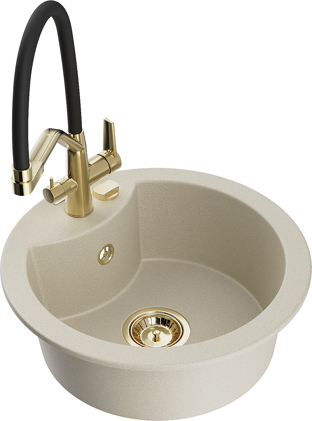 Mexen Diego granitový dřez 1-komorový s kuchyňskou baterií Duo, béžový - 6512-69-671701-57-G