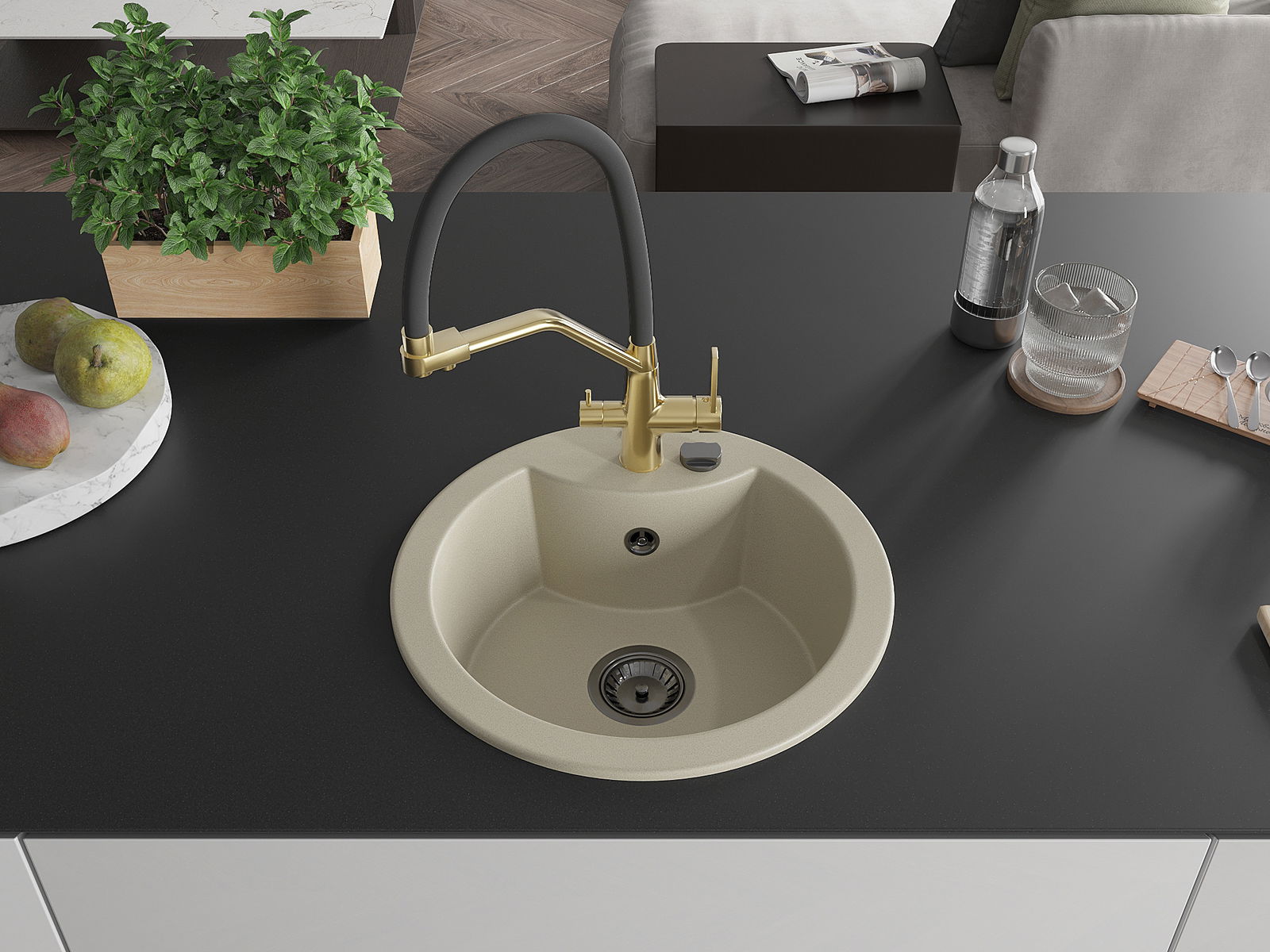 Dřez byl vyroben z vysoce kvalitního granitu. Představuje elegantní a především praktický doplněk každé kuchyně, bez ohledu na její styl. Vysoká kvalita a trvanlivost granitu zajišťují dlouholeté používání.