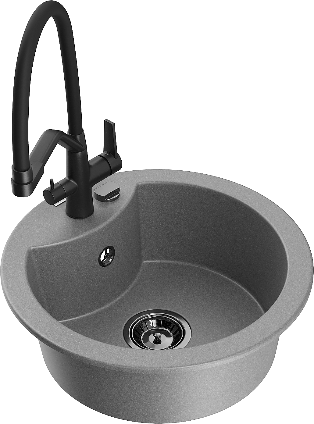 Mexen Diego granitový dřez 1-komorový s kuchyňskou baterií Duo, šedý - 6512-71-671701-70-B