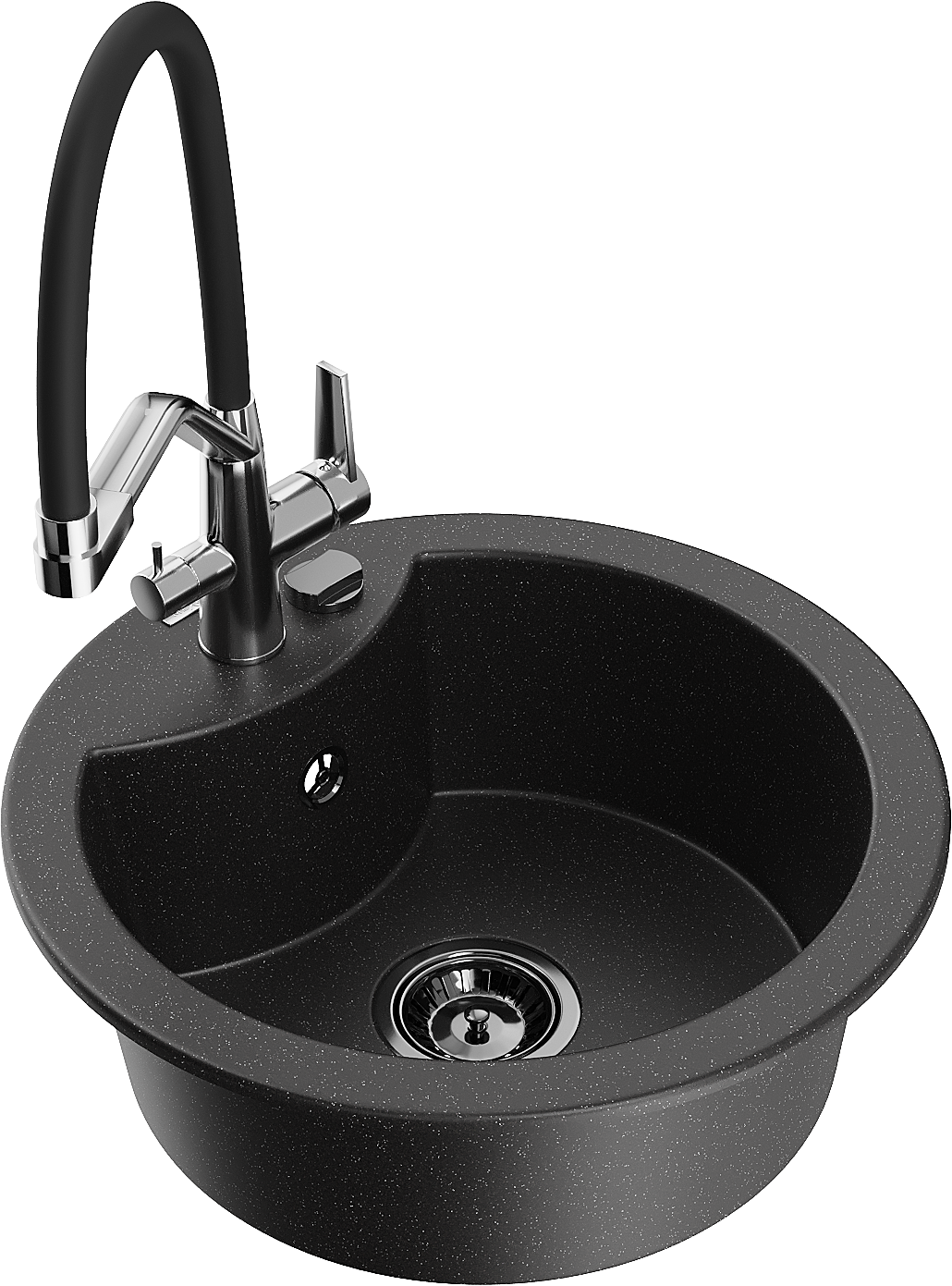 • Mexen Diego granitový dřez 1-komorový s kuchyňskou baterií Duo, černý/stříbrný metalík - 6512-73-671701-07-B