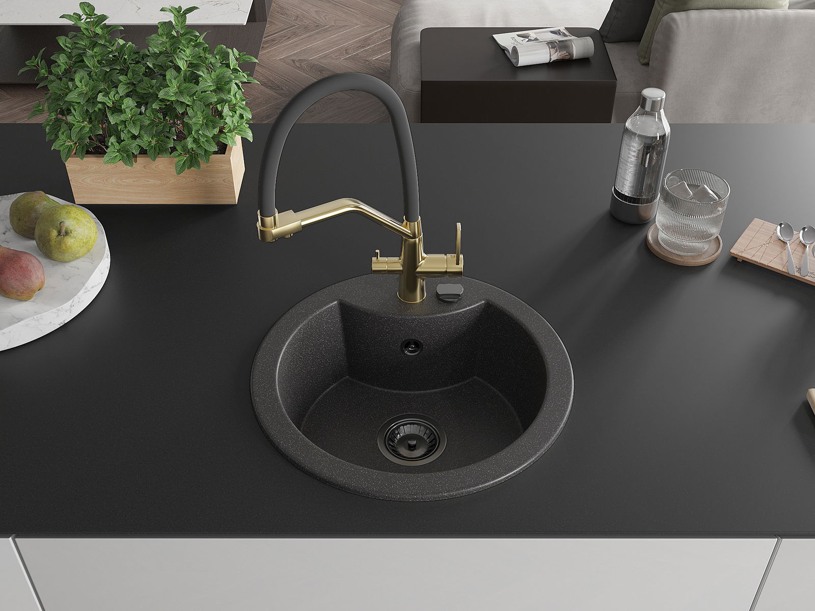 Dřez byl vyroben z vysoce kvalitního granitu. Představuje elegantní a především praktický doplněk každé kuchyně, bez ohledu na její styl. Vysoká kvalita a trvanlivost granitu zajišťují dlouholeté používání.