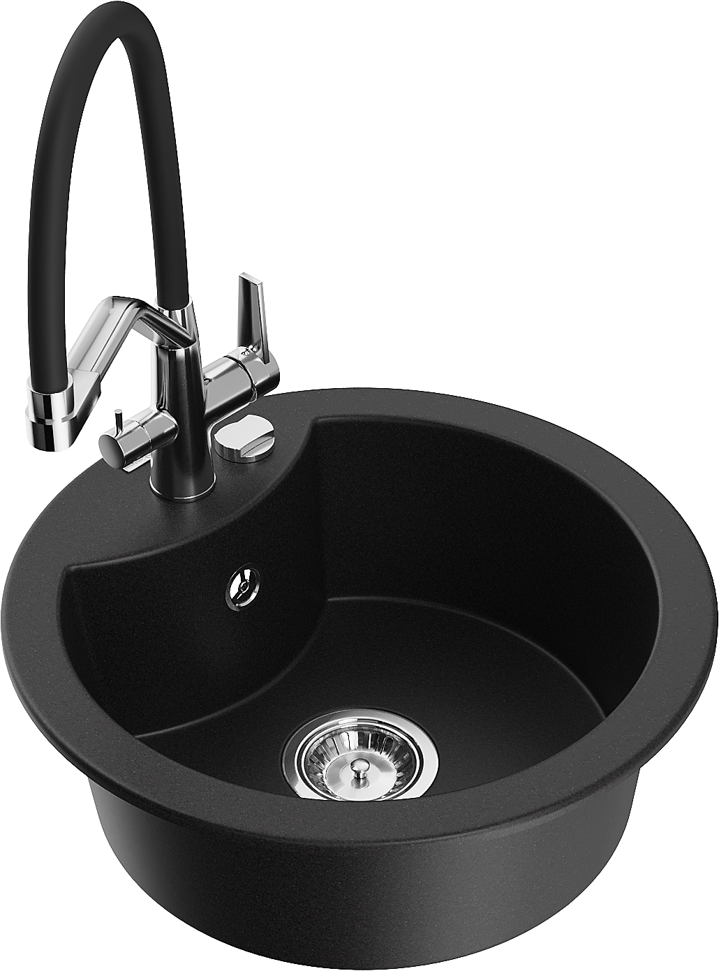 Mexen Diego granitový dřez 1-komorový s kuchyňskou baterií Duo, černý - 6512-77-671701-07