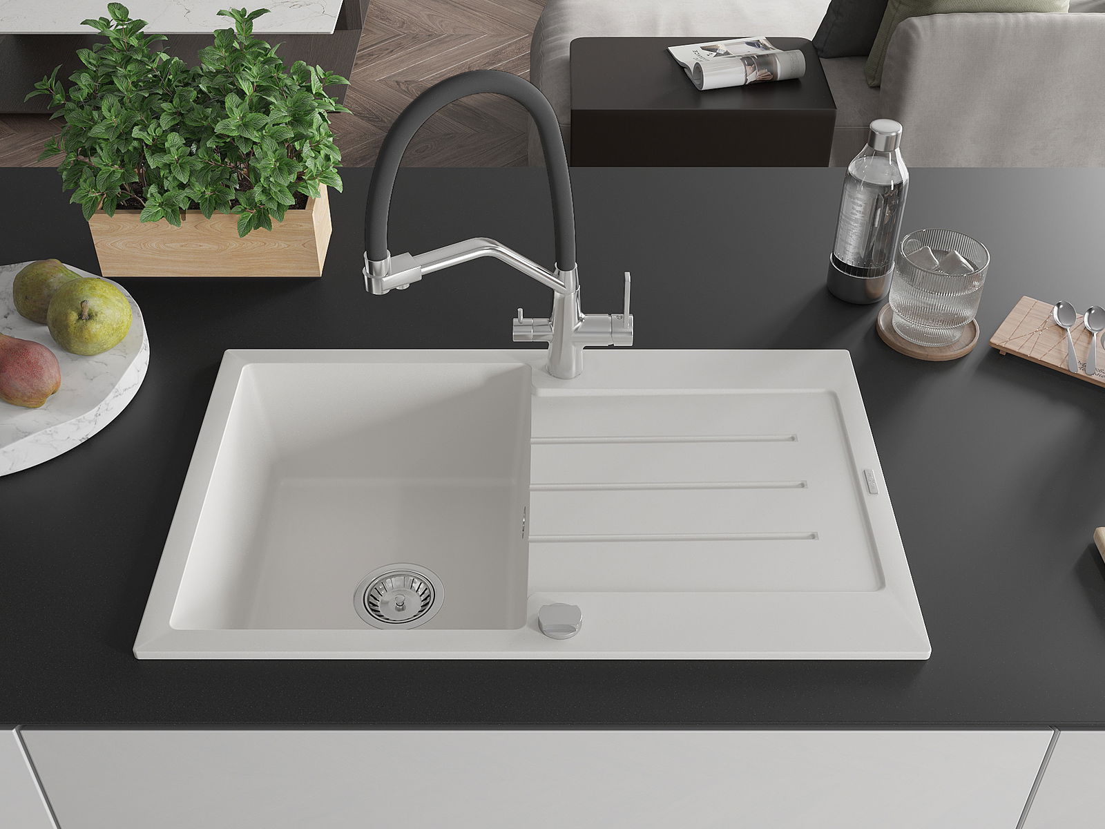 Povrch dřezu je velmi dobře vytvrzený, vyznačuje se výjimečnou odolností proti mechanickému poškození a poškrábání. Trvanlivý materiál umožňuje užívat si dobrý vzhled dřezu po mnoho let používání.