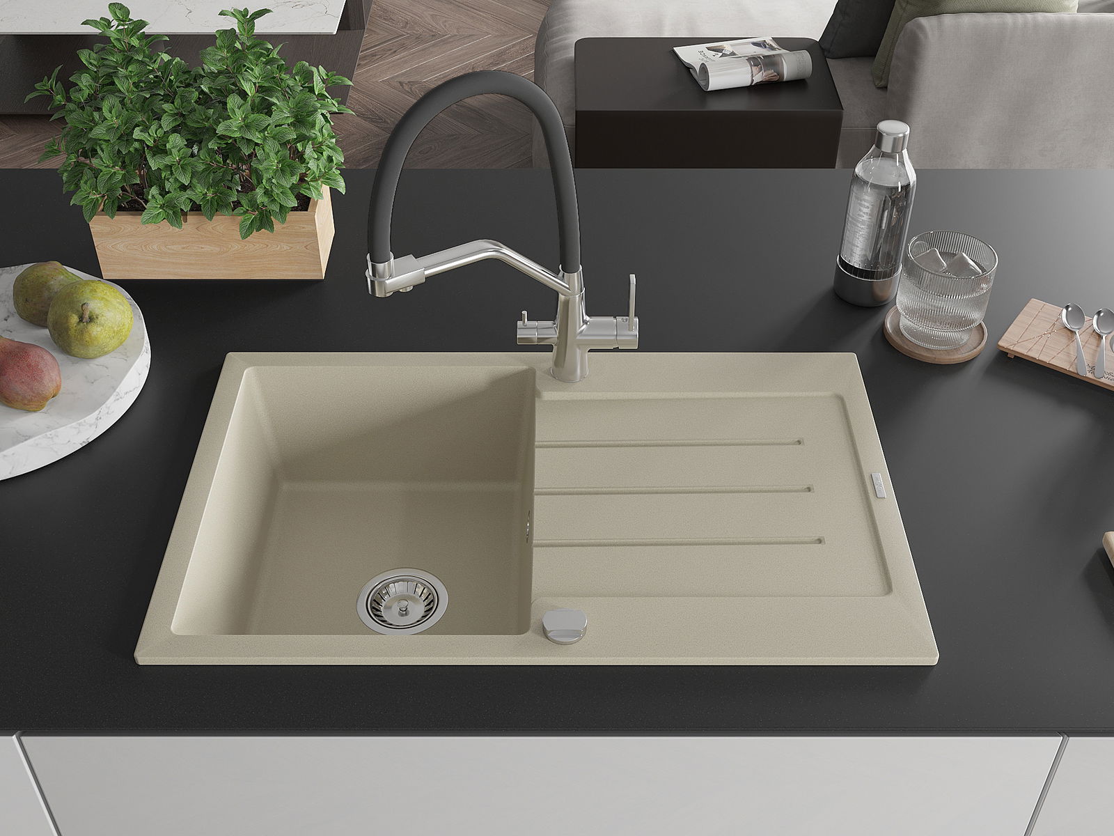 Dřez byl vyroben z vysoce kvalitního granitu. Představuje elegantní a především praktický doplněk každé kuchyně, bez ohledu na její styl. Vysoká kvalita a trvanlivost granitu zajišťují dlouholeté používání.