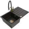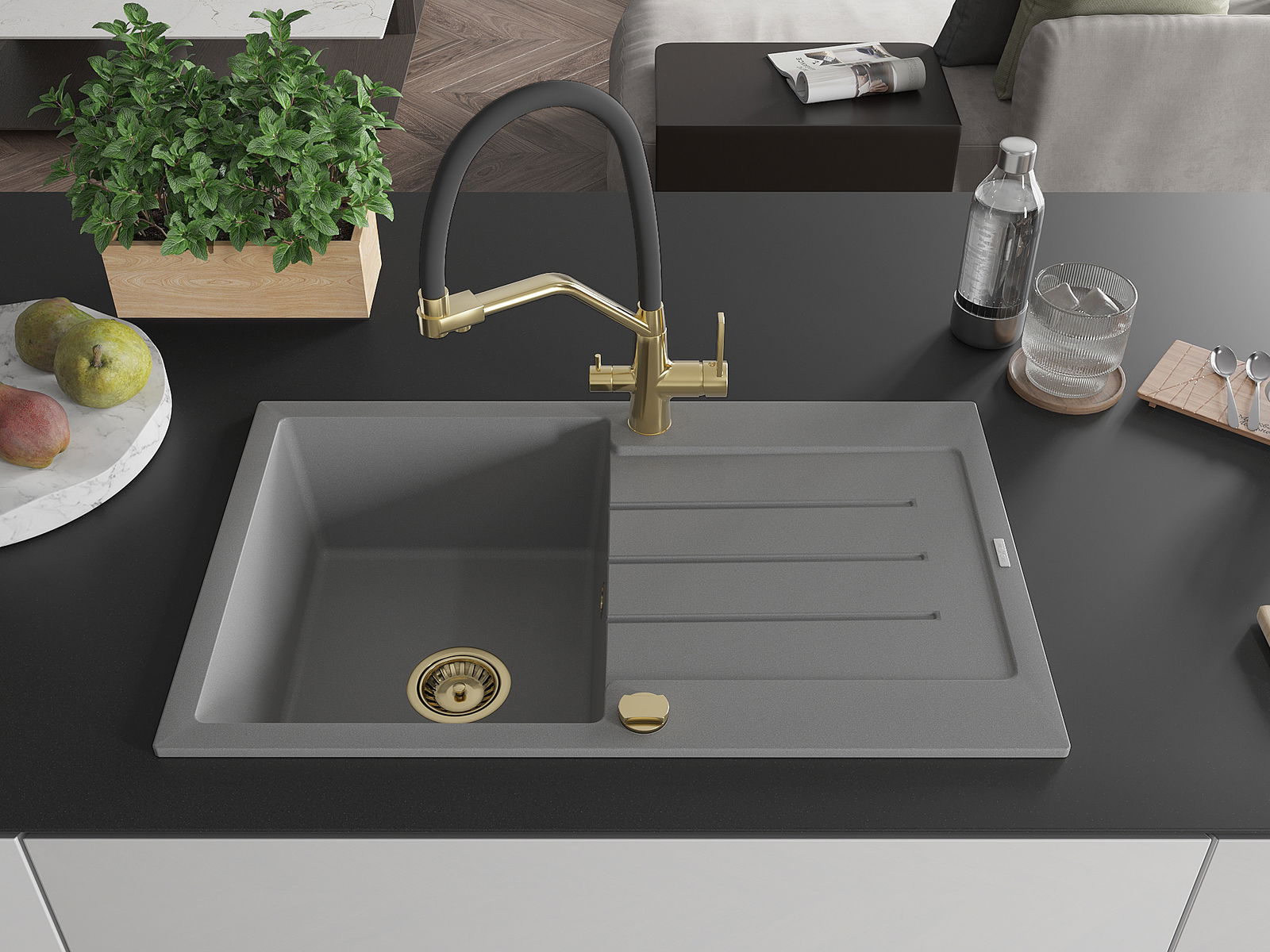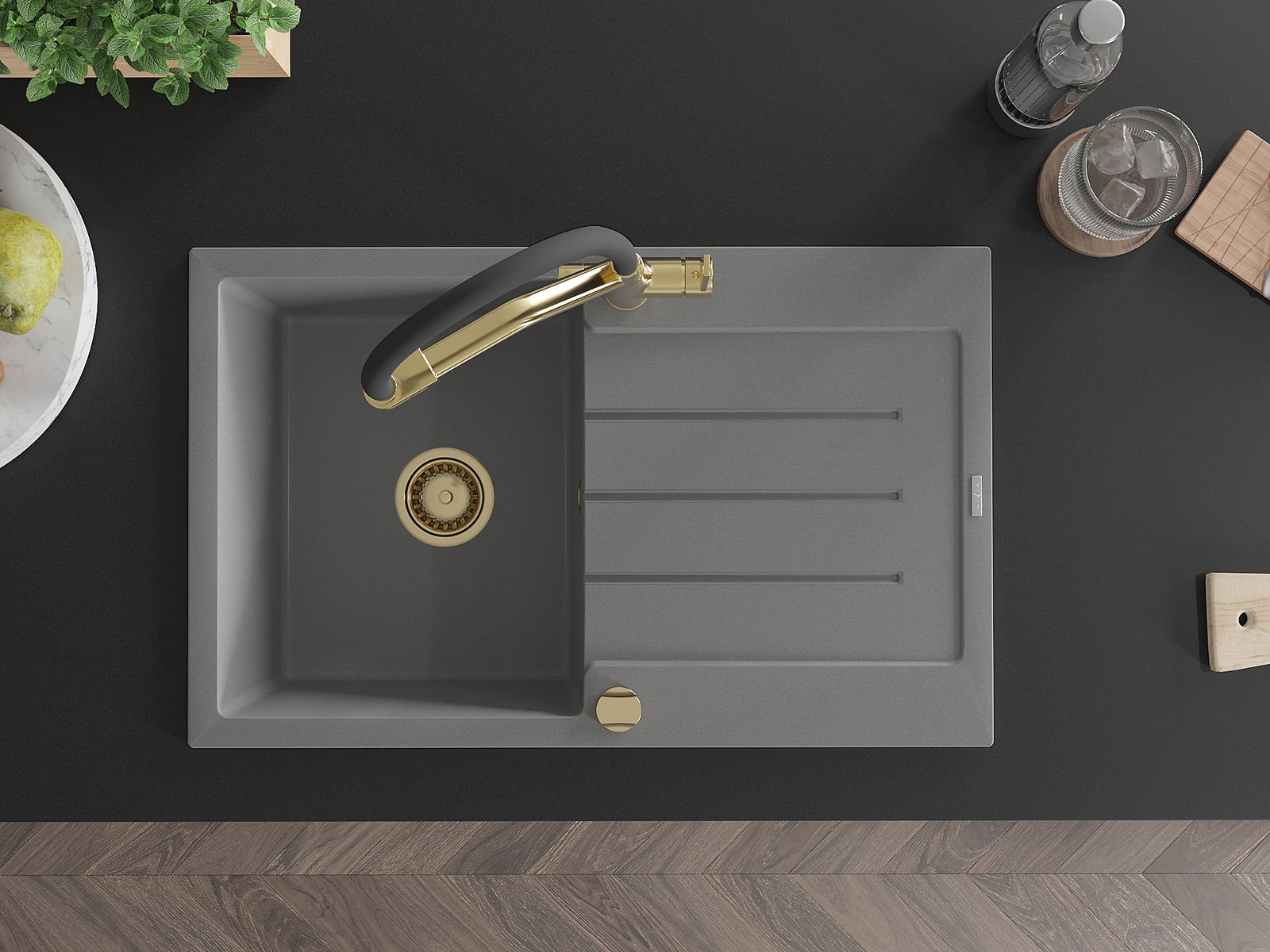 Mexen Bruno žulový dřez 1-komorový s odkapávačem a kuchyňskou baterií Duo, šedý - 6513-71-671701-57-G
