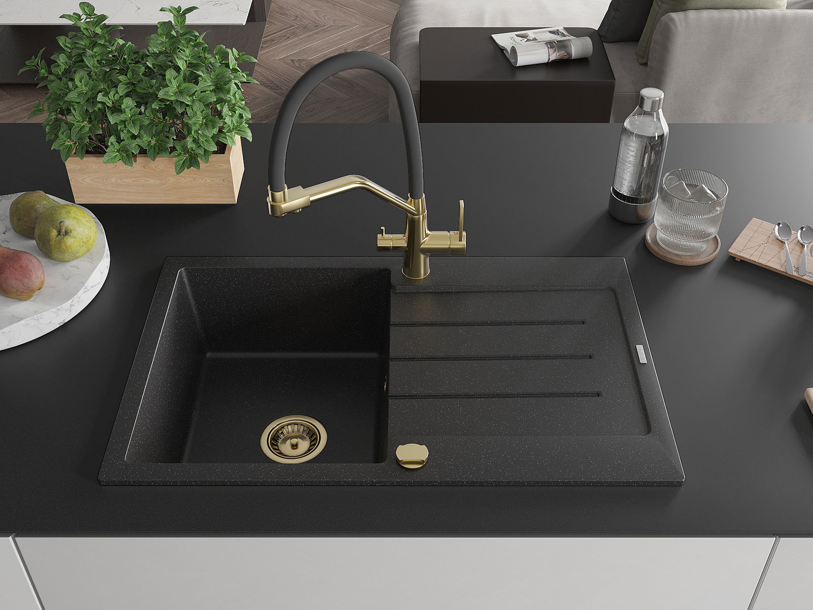 Dřez byl vyroben z vysoce kvalitního granitu. Představuje elegantní a především praktický doplněk každé kuchyně, bez ohledu na její styl. Vysoká kvalita a trvanlivost granitu zajišťují dlouholeté používání.