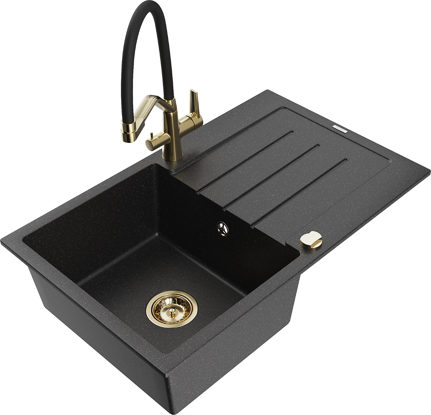 Mexen Bruno granitový dřez 1-komorový s odkapávačem a kuchyňskou baterií Duo, černý/stříbrný metalik - 6513-73-671701-57-G