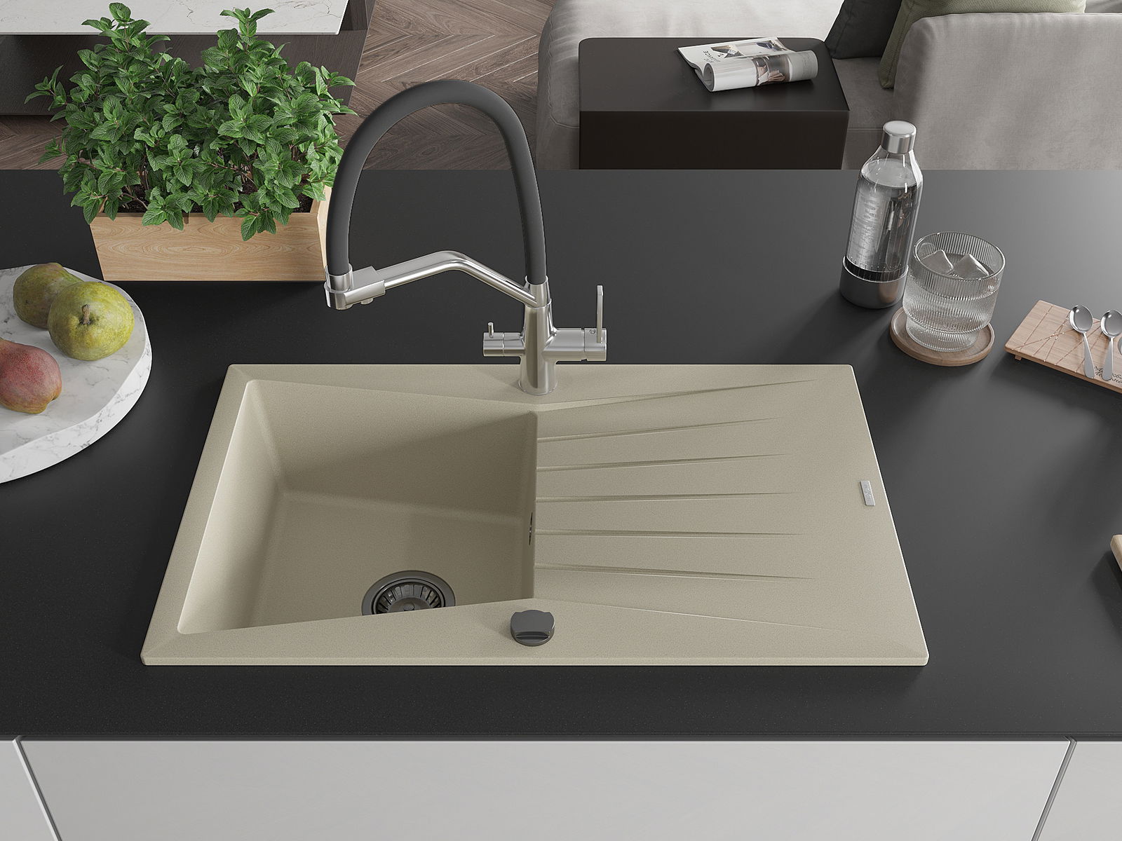 Dřez byl vyroben z vysoce kvalitního granitu. Představuje elegantní a především praktický doplněk každé kuchyně, bez ohledu na její styl. Vysoká kvalita a trvanlivost granitu zajišťují dlouholeté používání.