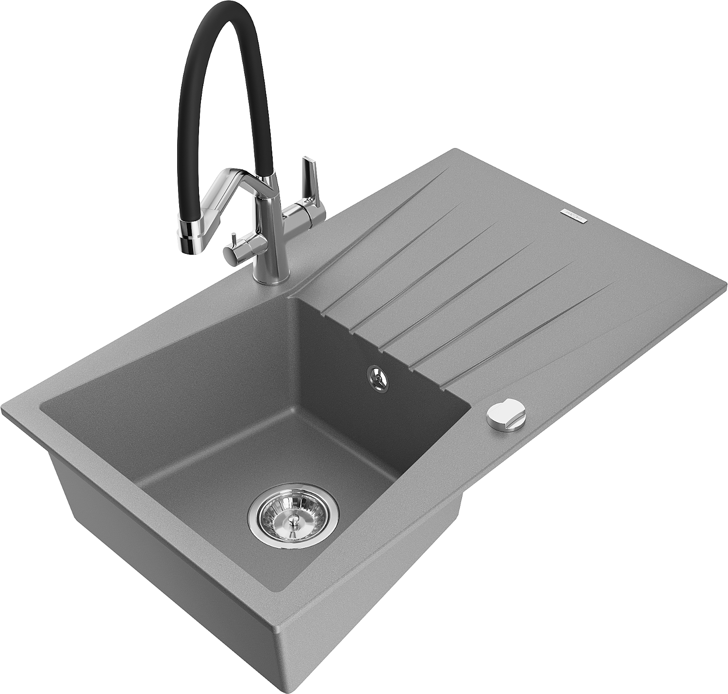 Mexen Cesar dřez granitový 1-komorový s odkapávačem a kuchyňskou baterií Duo, šedý - 6514-71-671701-07