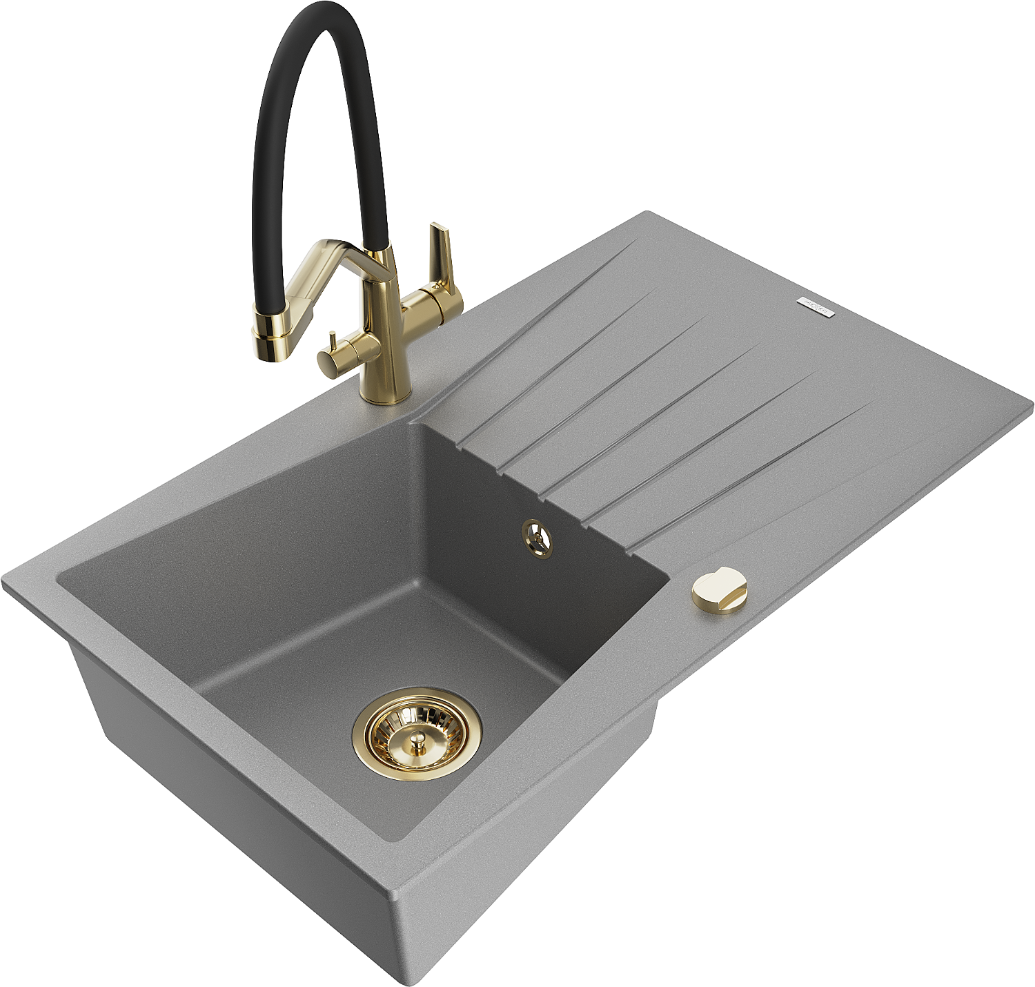 Mexen Cesar granitový dřez s odkapávačem a kuchyňskou baterií Duo, šedý - 6514-71-671701-57-G