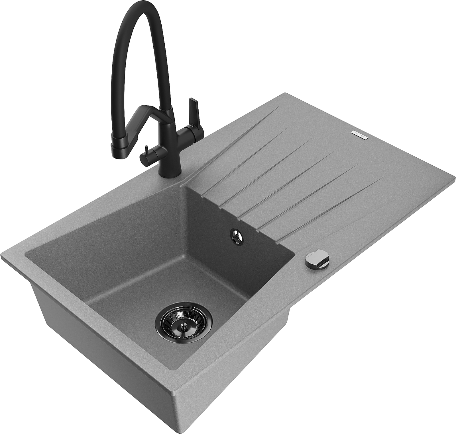 Mexen Cesar granitový dřez 1-komorový s odkapávačem a kuchyňskou baterií Duo, šedý - 6514-71-671701-70-B