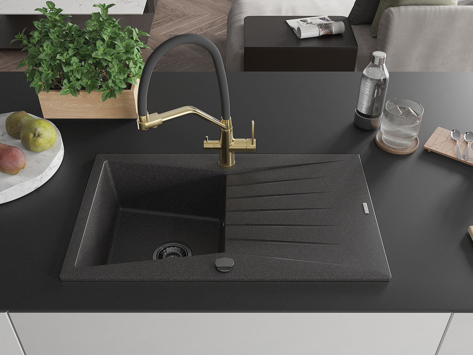 Dřez byl vyroben z vysoce kvalitního granitu. Představuje elegantní a především praktický doplněk každé kuchyně, bez ohledu na její styl. Vysoká kvalita a trvanlivost granitu zajišťují dlouholeté používání.