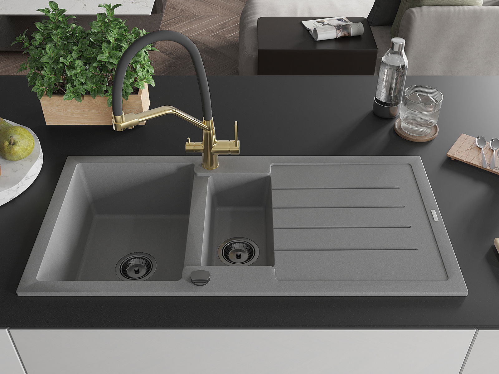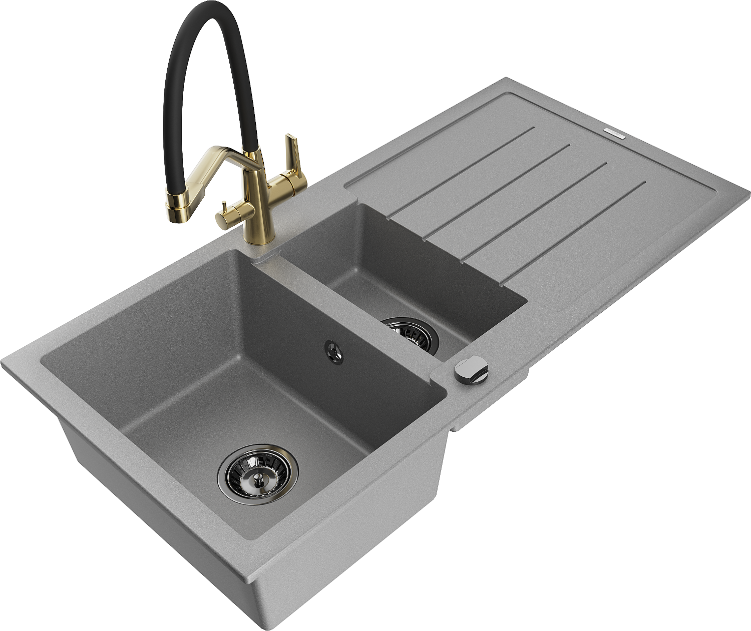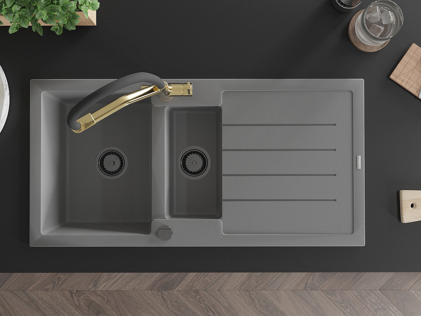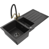 Mexen Andres žulový dřez 1,5-komorový s odkapávačem a kuchyňskou baterií Duo, šedý - 6515-71-671701-57-B