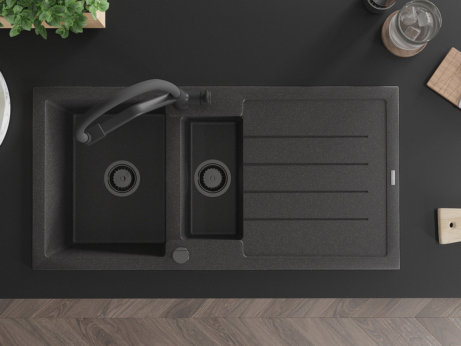 Dřez byl vyroben z vysoce kvalitního granitu. Představuje elegantní a především praktický doplněk každé kuchyně, bez ohledu na její styl. Vysoká kvalita a trvanlivost granitu zajišťují dlouholeté používání.
