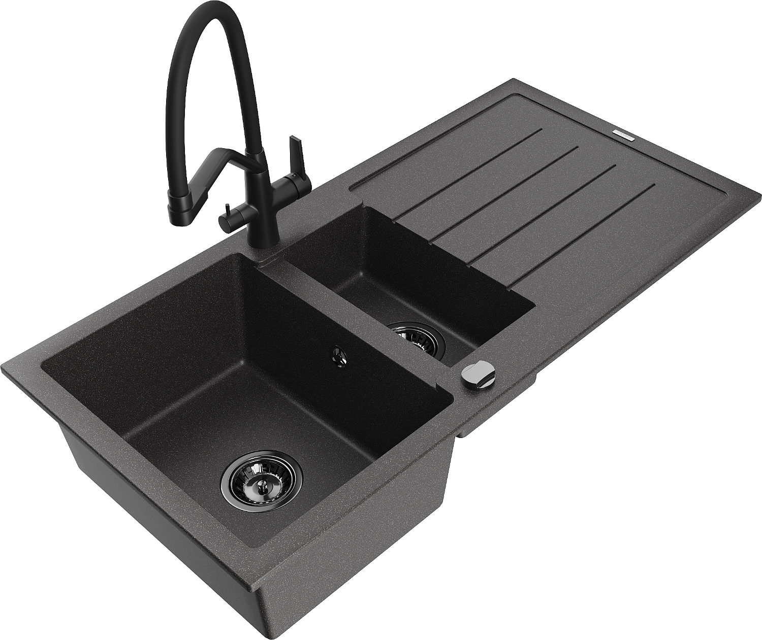 Mexen Andres žulový dřez 1,5-komorový s odkapávačem a kuchyňskou baterií Duo, černý tečkovaný - 6515-76-671701-70-B