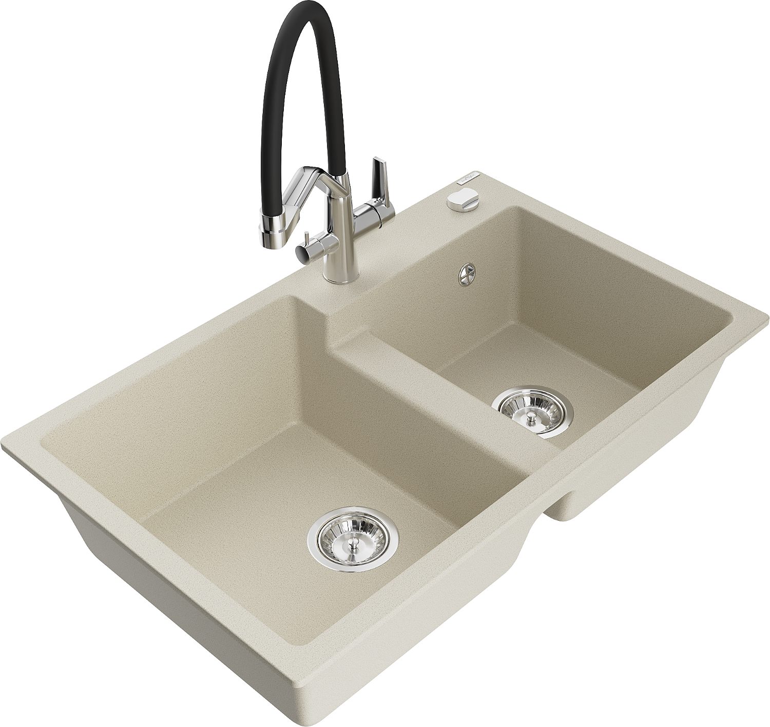Mexen Tomas žulový dřez 2-komorový s kuchyňskou baterií Duo, béžový - 6516-69-671701-07