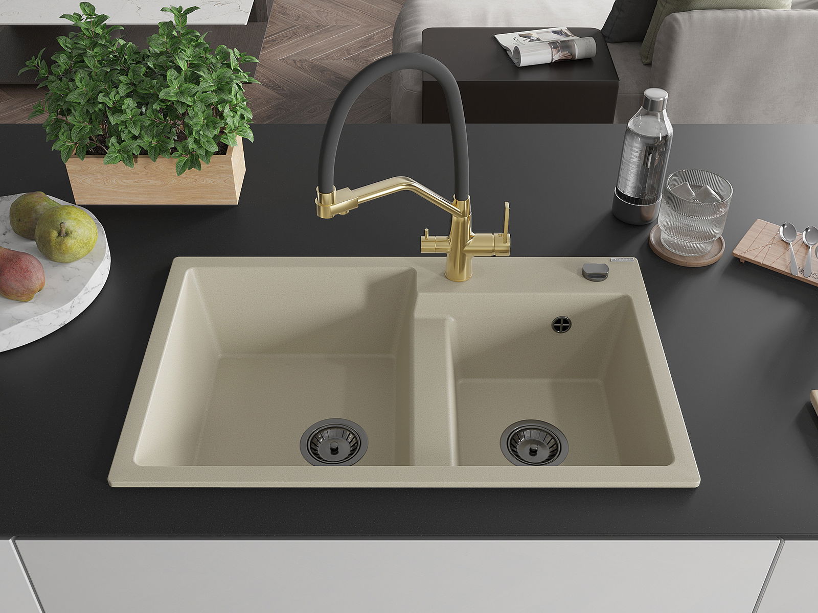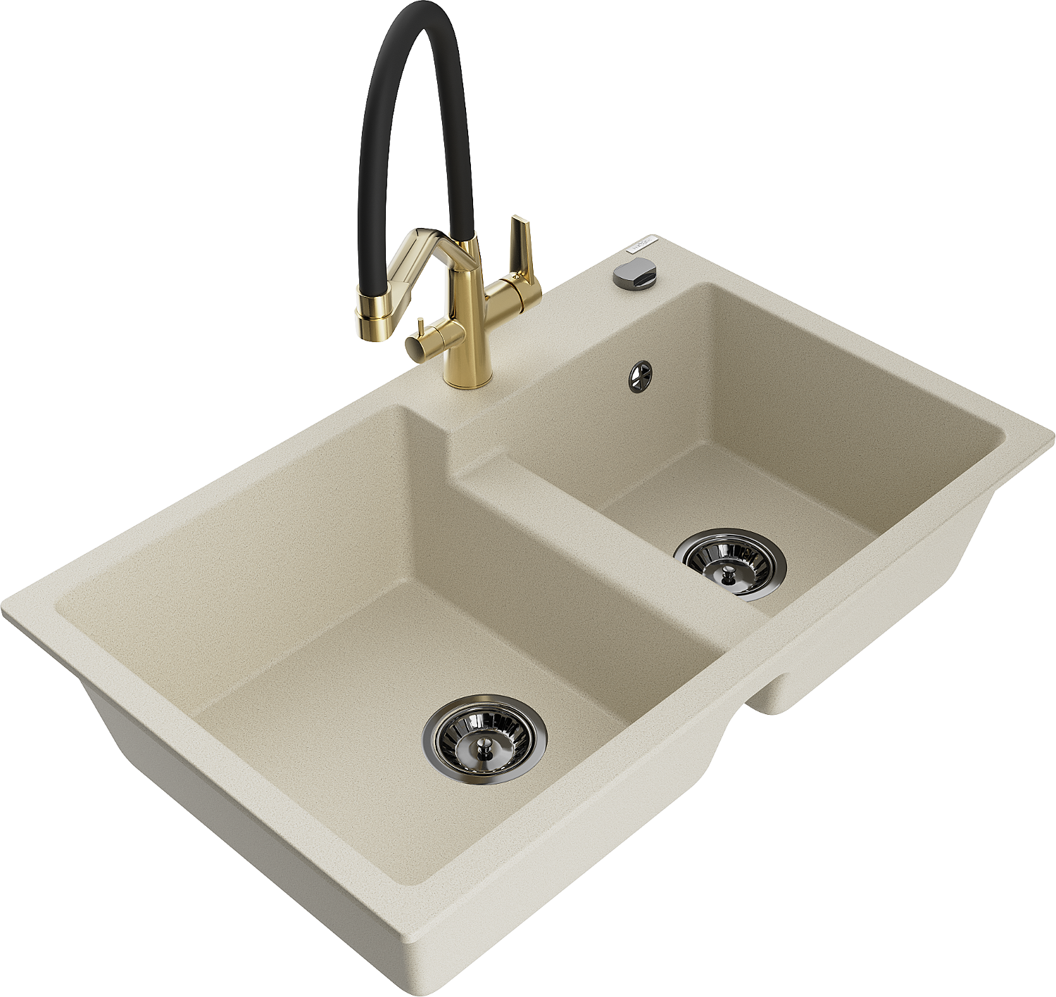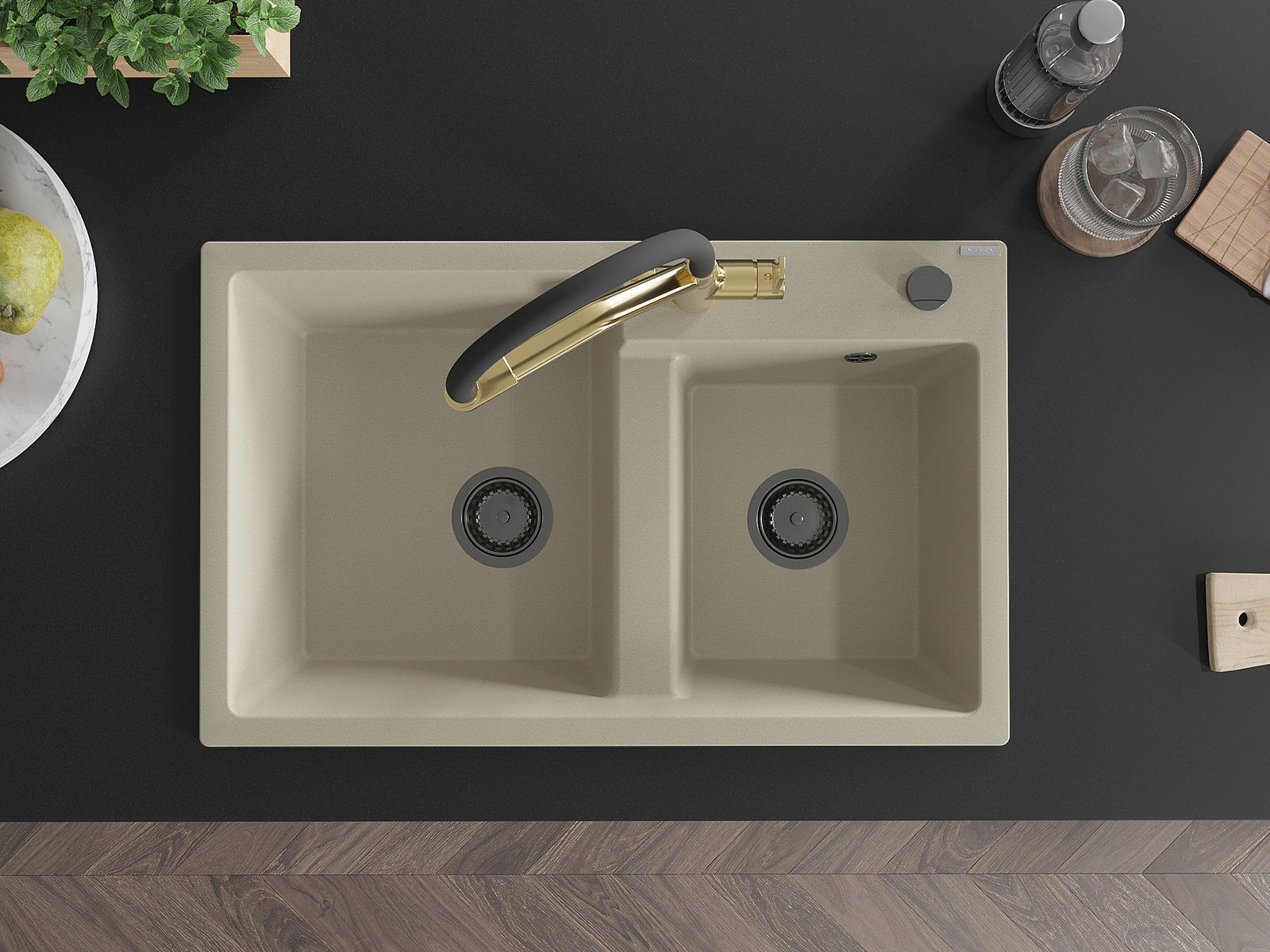 Mexen Tomas granitový dřez 2-komorový s kuchyňskou baterií Duo, béžový - 6516-69-671701-57-B