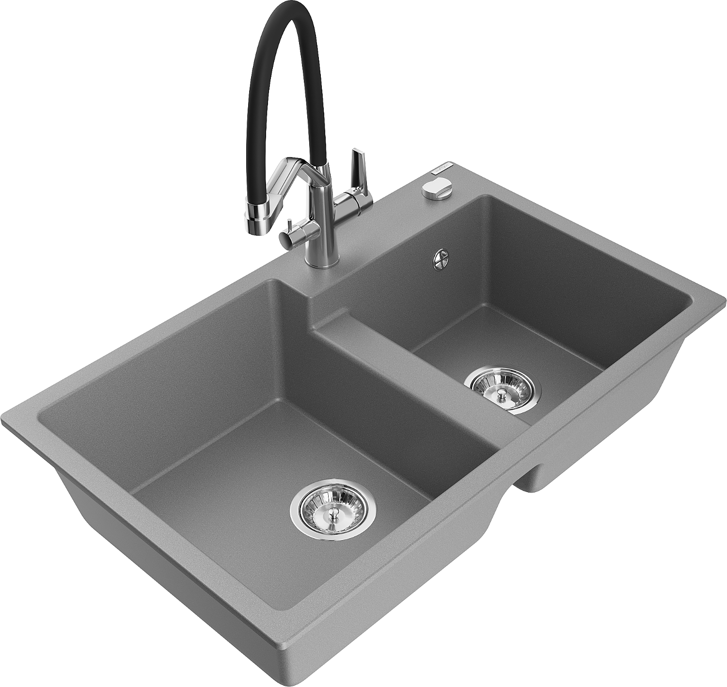 Mexen Tomas dřez granitový 2-komorový s kuchyňskou baterií Duo, šedý - 6516-71-671701-07