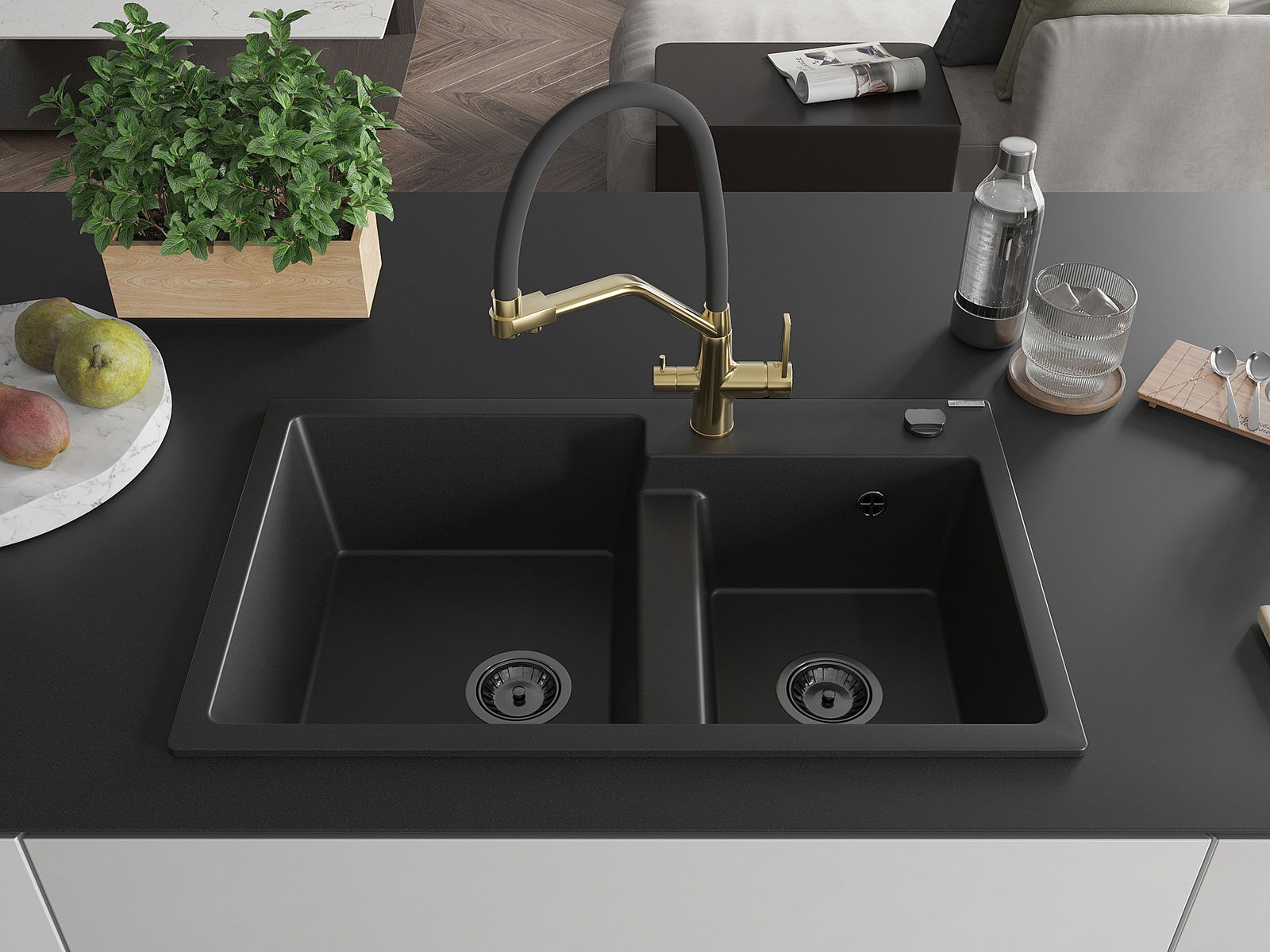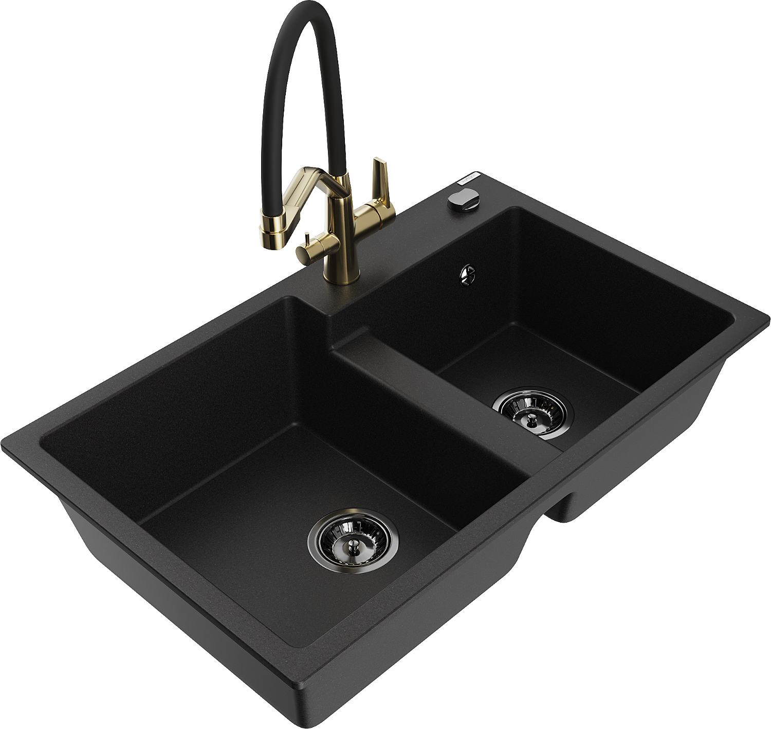 Mexen Tomas dvojkomorový granitový dřez s kuchyňskou baterií Duo, černý - 6516-77-671701-57-B