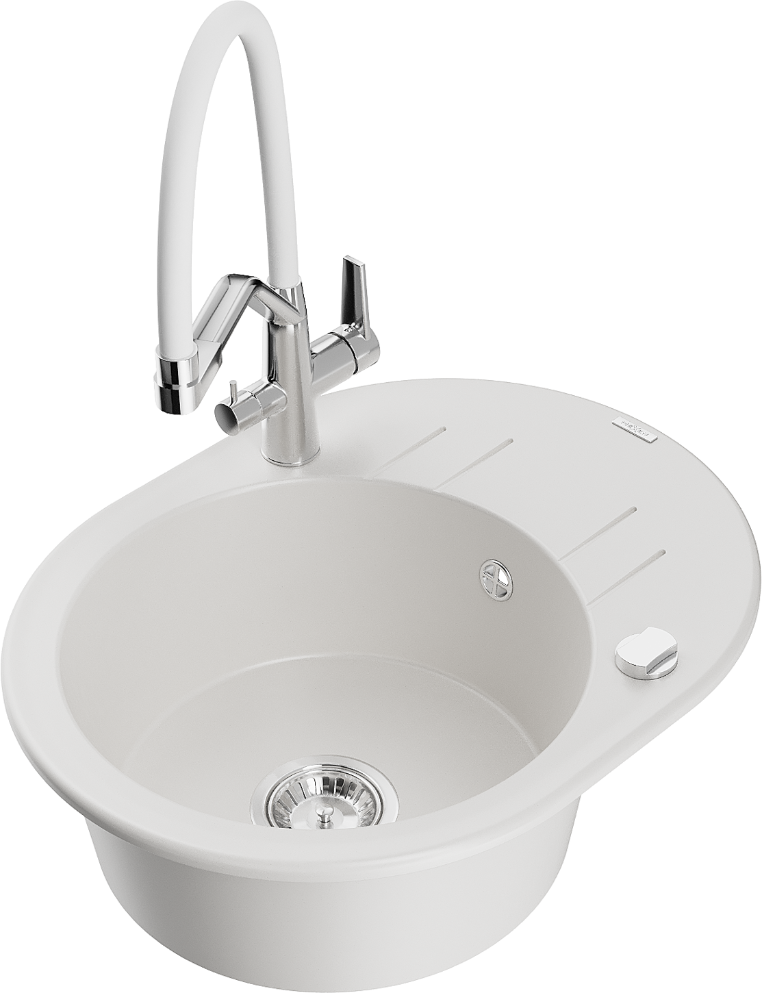 Mexen Kevin jednokomorový granitový dřez s kuchyňskou baterií Duo, bílý - 6517-20-671701-02