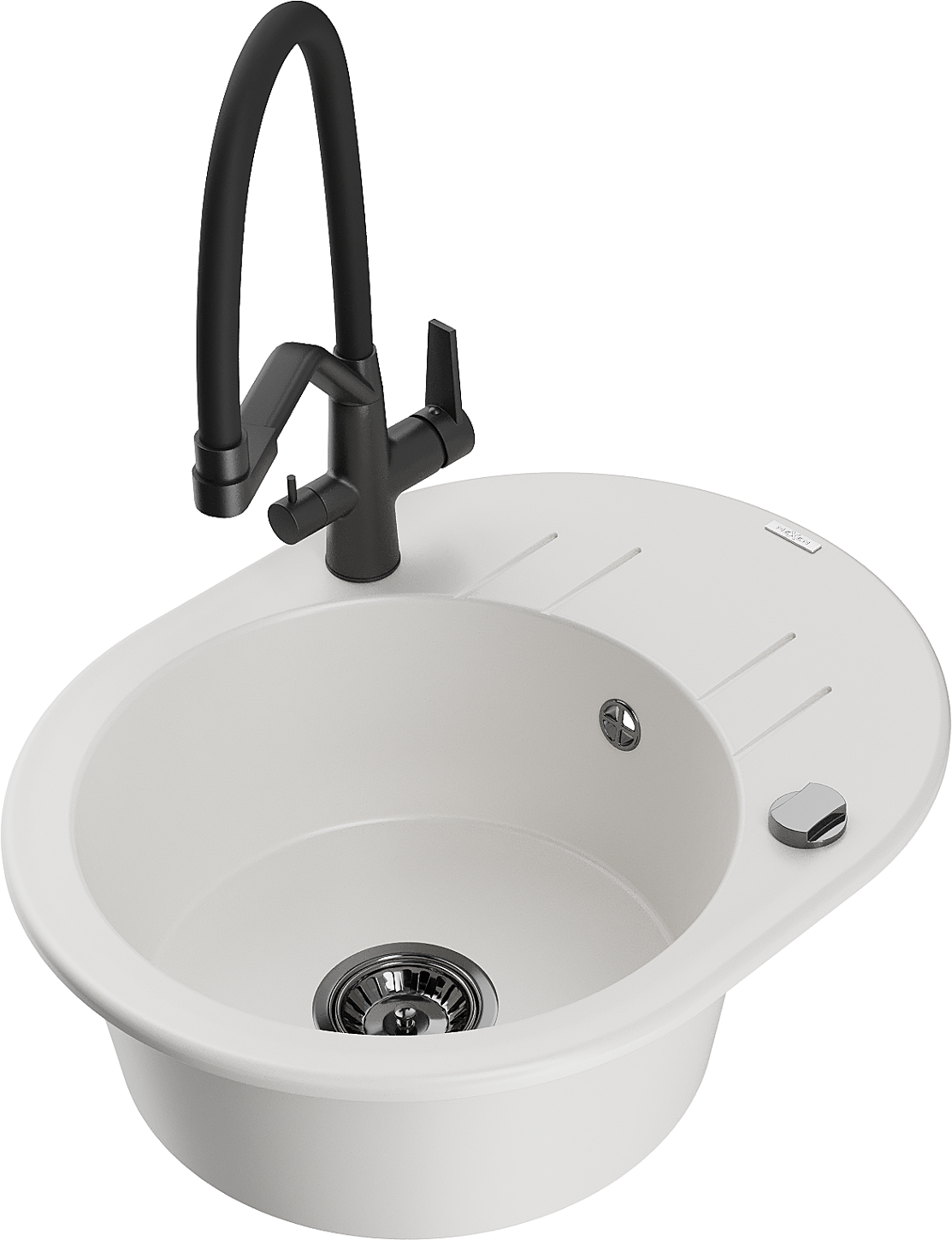 Povrch dřezu je odolný proti skvrnám a zabarvení, což usnadňuje jeho čištění a zachovává jeho barvu po dlouhou dobu používání. Estetický a praktický doplněk každé kuchyně.