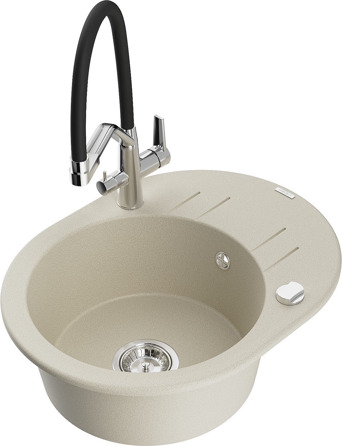 Mexen Kevin granitový dřez jednodřezový s kuchyňskou baterií Duo, béžový - 6517-69-671701-07