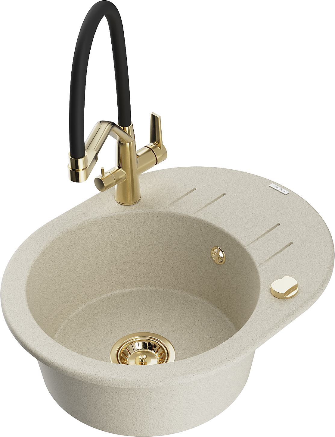 Mexen Kevin granitový dřez 1-komorový s kuchyňskou baterií Duo, béžový - 6517-69-671701-57-G