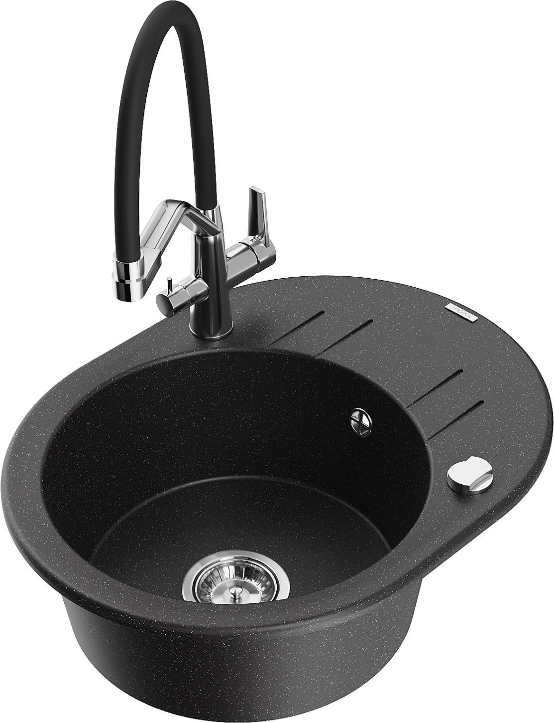 Mexen Kevin jednovanový žulový dřez s kuchyňskou baterií Duo, černá/stříbrný metalický - 6517-73-671701-07