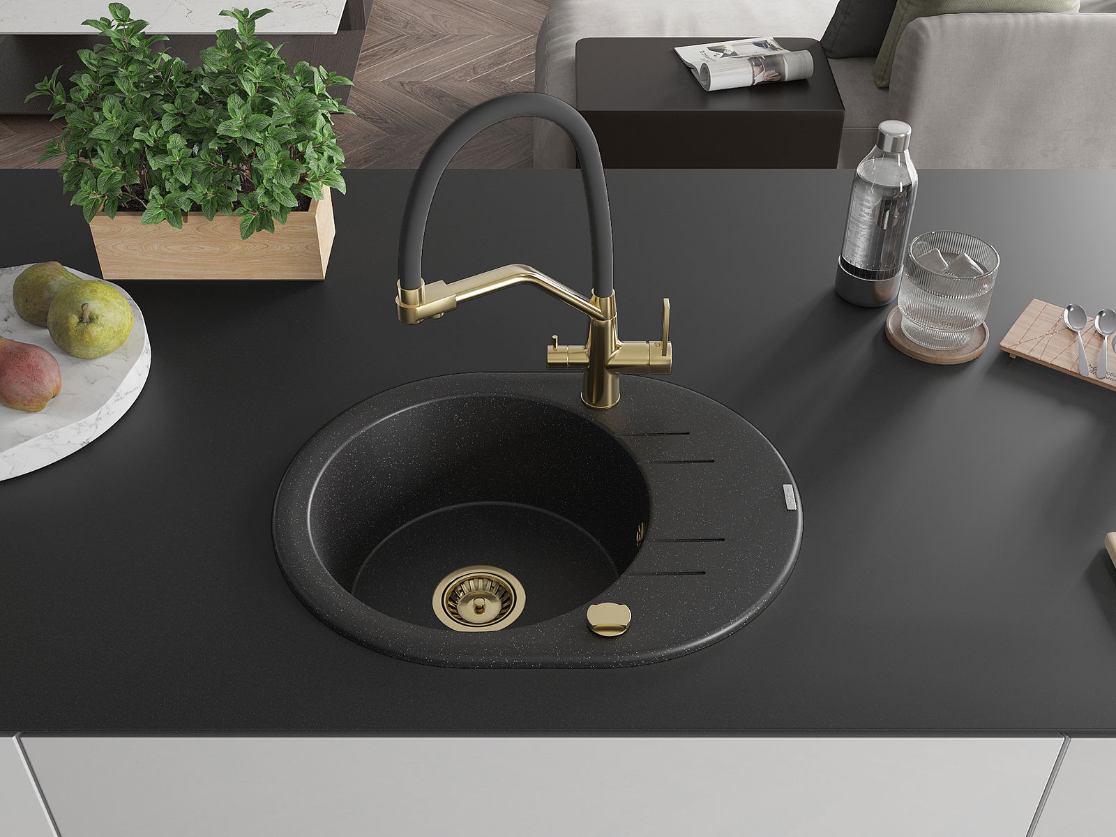 Dřez byl vyroben z vysoce kvalitního granitu. Představuje elegantní a především praktický doplněk každé kuchyně, bez ohledu na její styl. Vysoká kvalita a trvanlivost granitu zajišťují dlouholeté používání.