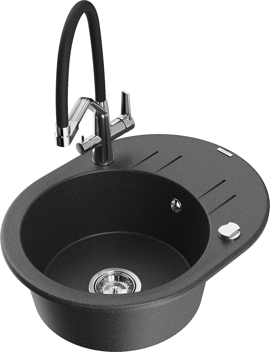 Mexen Kevin granitový dřez 1-komorový s kuchyňskou baterií Duo, černý skvrnitý - 6517-76-671701-07