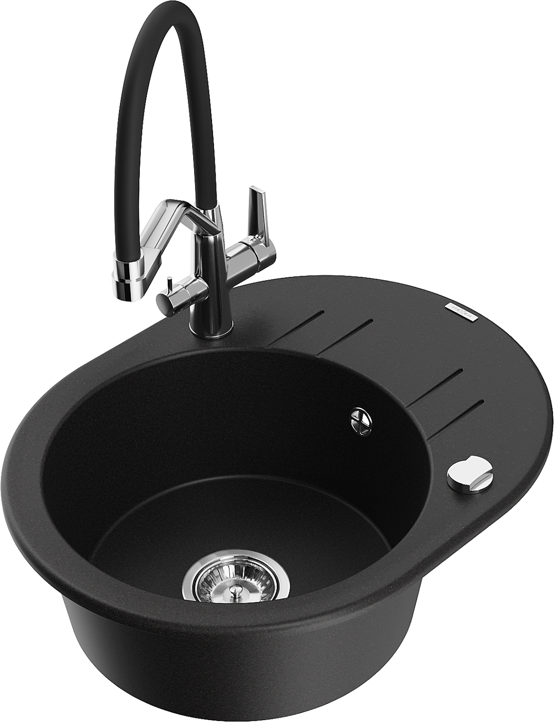 Mexen Kevin granitový dřez 1-komorový s kuchyňskou baterií Duo, černý - 6517-77-671701-07