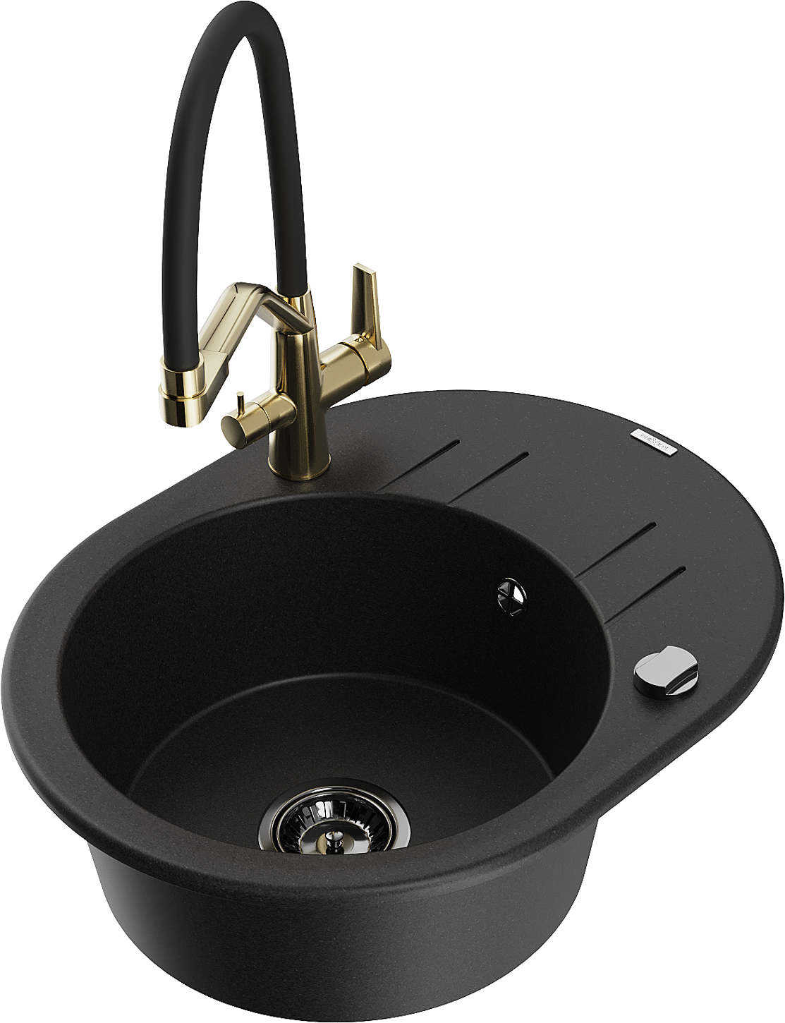 Mexen Kevin granitový dřez s jednou komorou a kuchyňskou baterií Duo, černý - 6517-77-671701-57-B