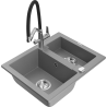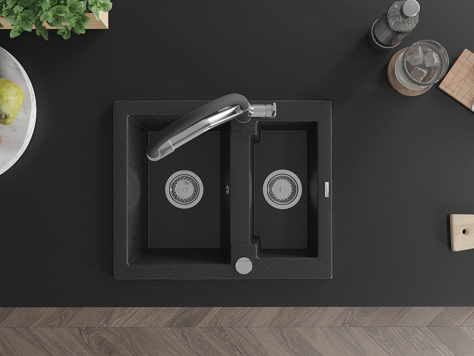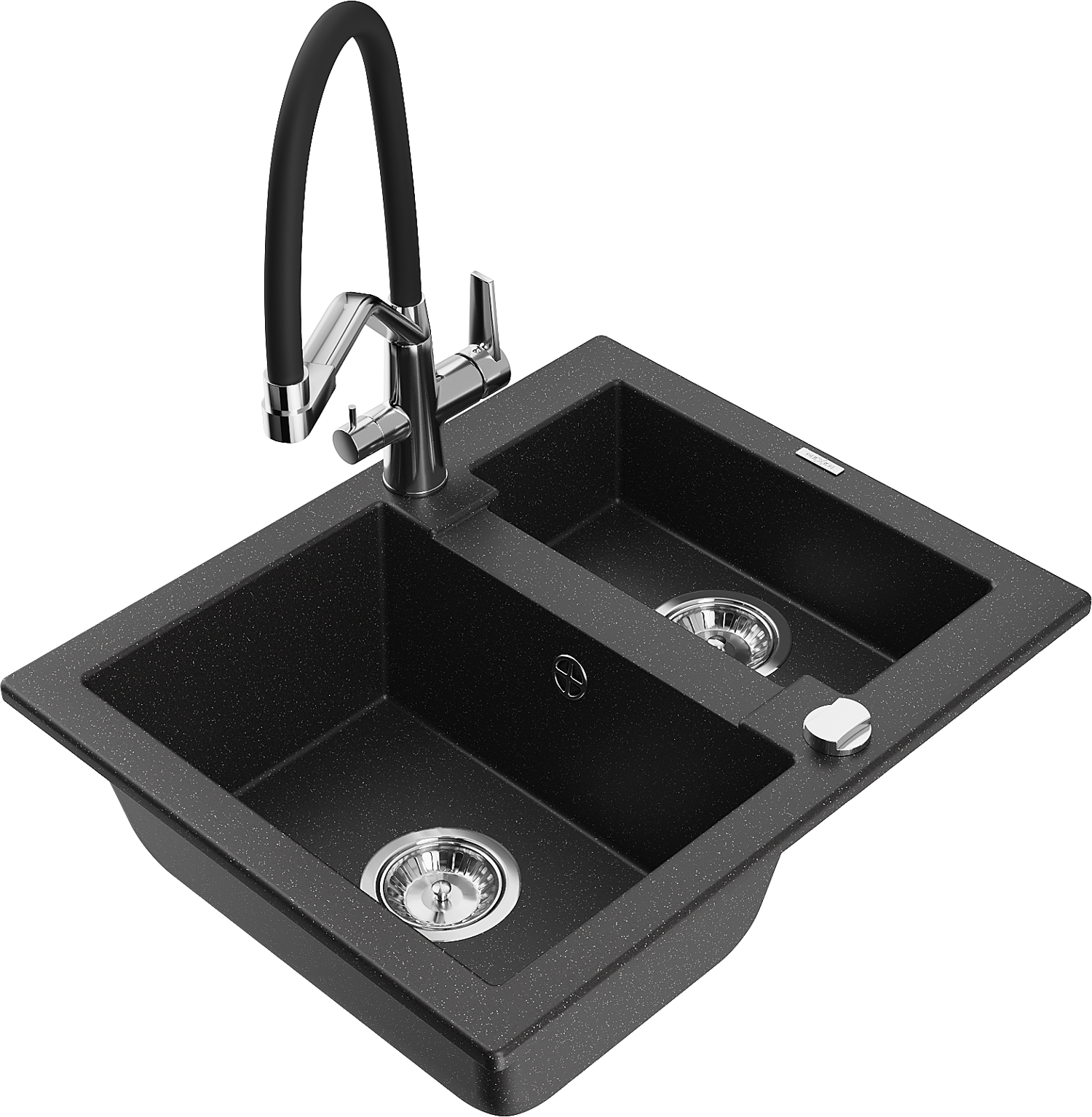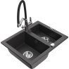 Mexen Carlos žulový dřez 1,5-komorový s kuchyňskou baterií Duo, černý/stříbrný metalik - 6518-73-671701-07