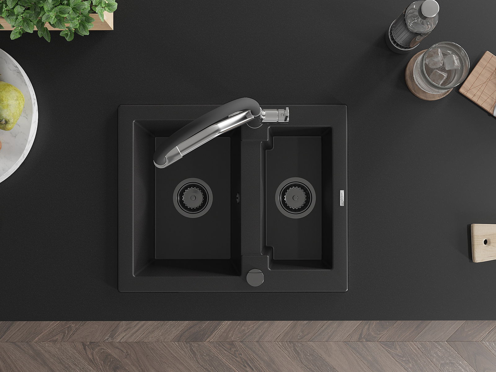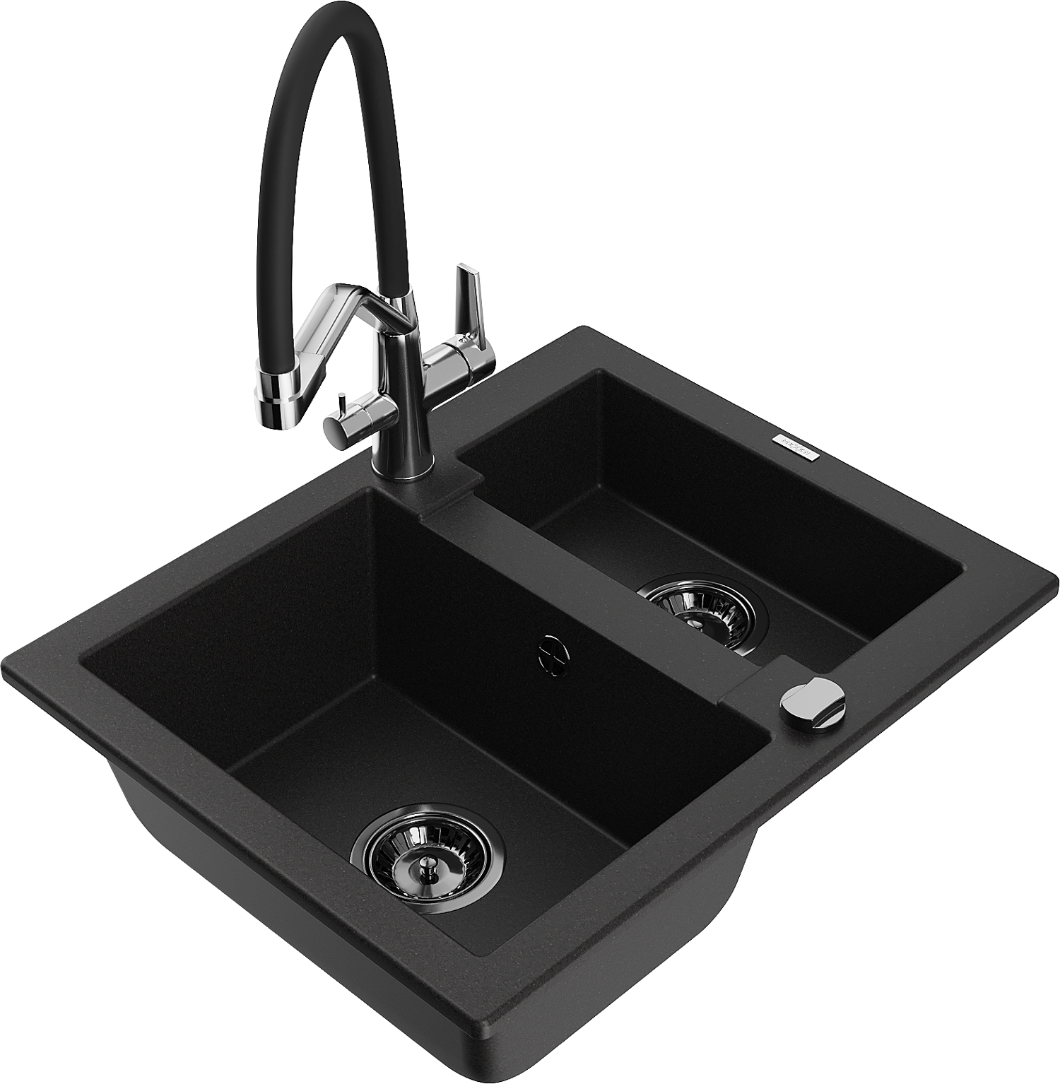 Mexen Carlos granitový dřez 1,5-komorový s kuchyňskou baterií Duo, černý - 6518-77-671701-07-B