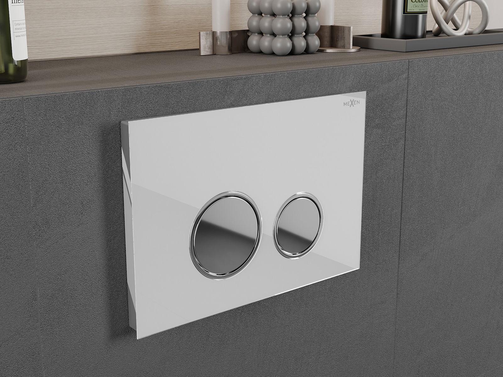 Tlačítko je určeno pro nástěnné rámy, kde je místo montáže umístěno na přední straně konstrukce. Díky tomuto umístění poskytuje snadný přístup a pohodlné ovládání splachování.