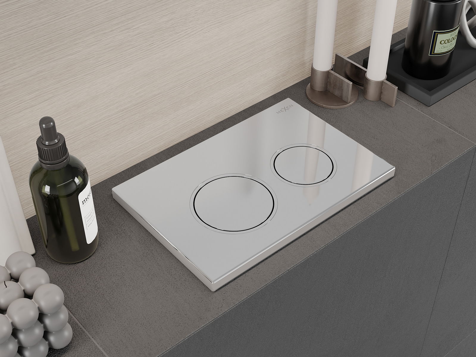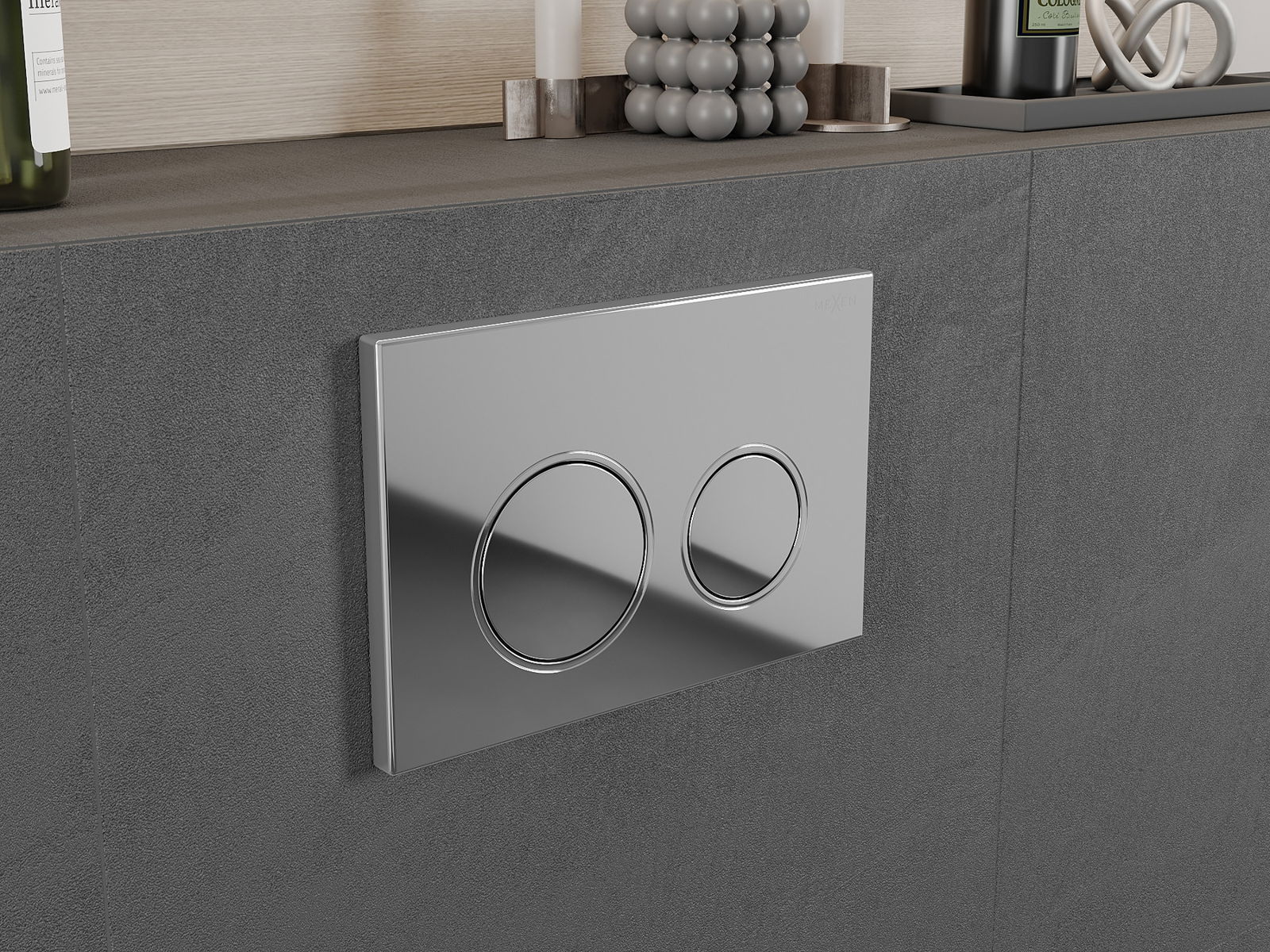 Tlačítko je určeno pro rámy Mexen ze série XS. Může být montováno jak zepředu, tak i shora rámu, což zvyšuje jeho univerzálnost. Takové řešení usnadňuje instalaci v různých montážních podmínkách. Díky tomu je obsluha splachování pohodlná a intuitivní.