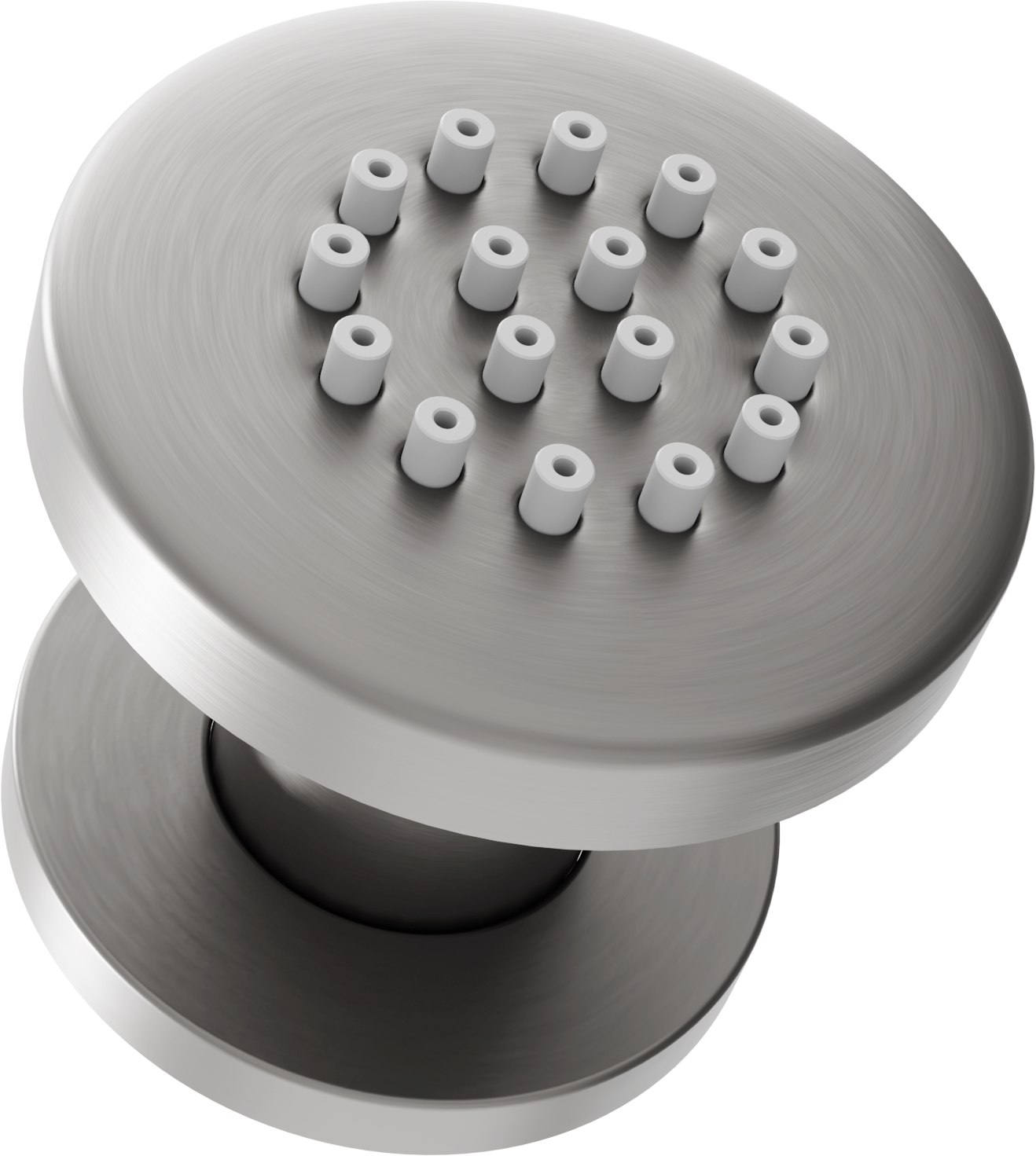 Systém se vyznačuje použitím silikonových gumiček, omezuje usazování vodního kamene a usnadňuje čištění – stačí setřít prstem nebo hadříkem. Tímto způsobem lze zabránit ucpání trysek a prodloužit životnost produktu.