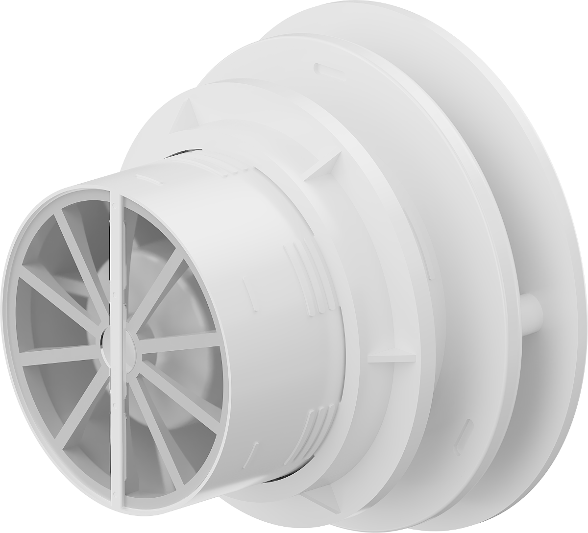 Zařízení je vybaveno mechanismem zabraňujícím zpětnému proudění vzduchu do místnosti po vypnutí ventilátoru. Zvláště užitečné v koupelnách, kde zabránění nežádoucímu proudění vzduchu může zlepšit komfort a hygienu.