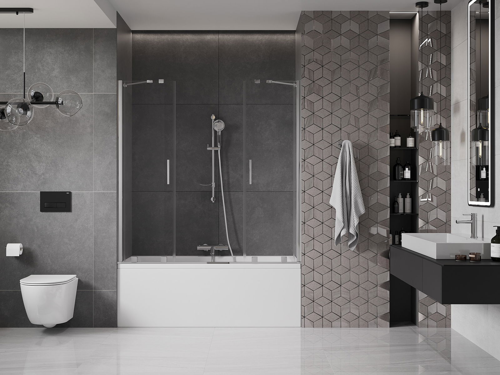 Účinná ochrana před rozléváním vody během koupání. Paraván má těsnění, která se ideálně přizpůsobují skleněné desce a okraji vany. Funkční řešení zajišťující bezpečnost a snadnou údržbu čistoty.