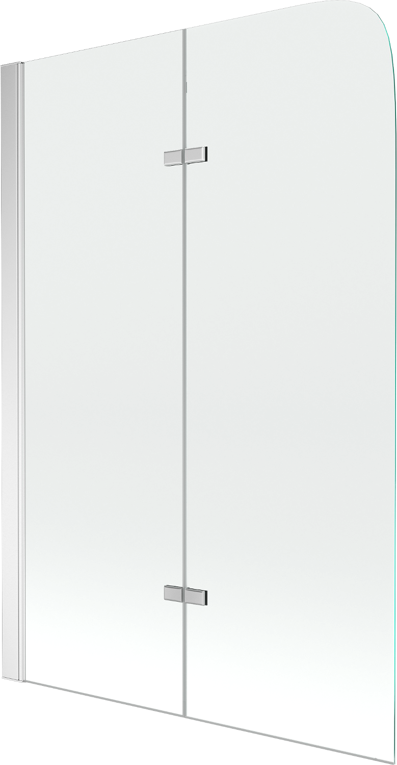 Paravan vyrobený ze dvou křídel s možností složení. Takové řešení umožňuje ušetřit více místa v koupelně a umožňuje volné využití zbývajícího prostoru, když nepoužíváme koupací zónu.