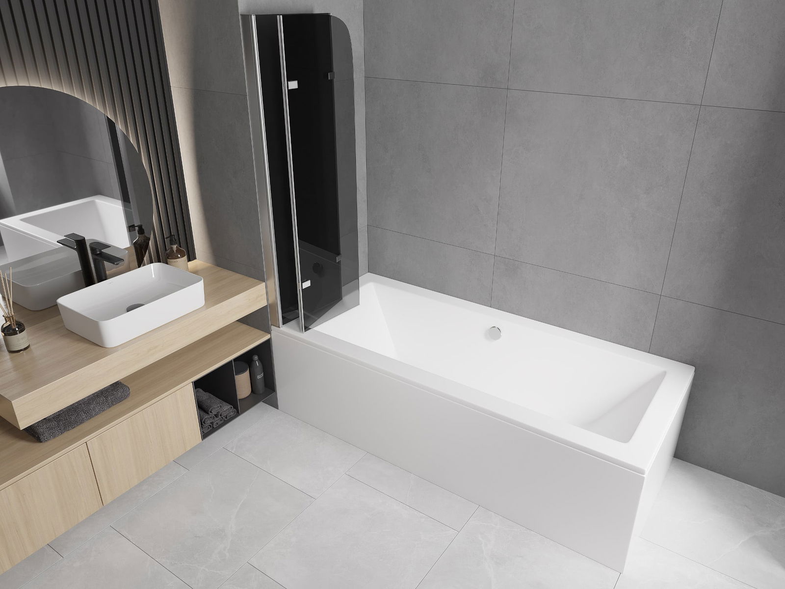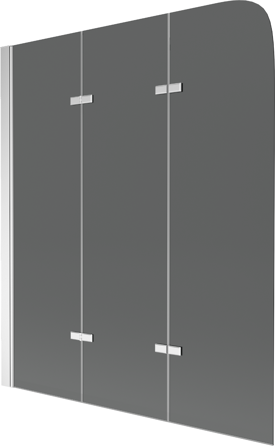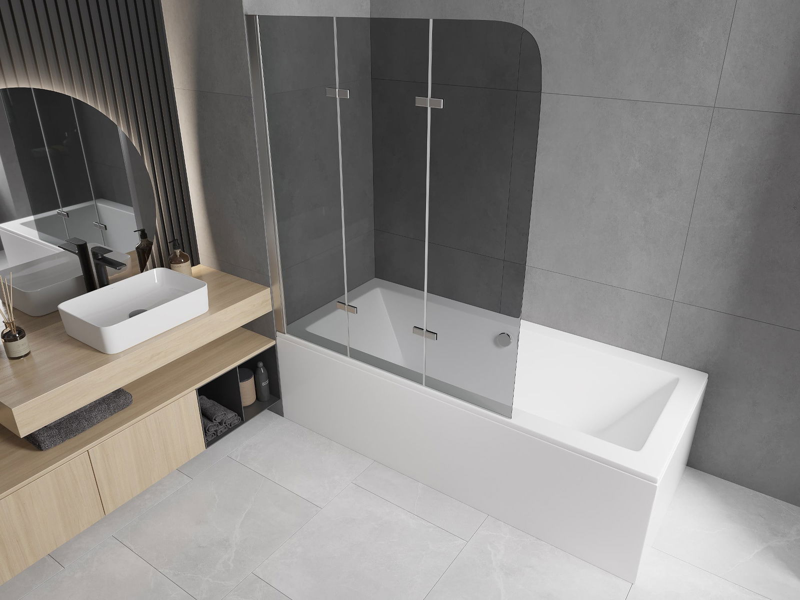 Paravan vyrobený ze tří křídel s možností složení. Takové řešení umožňuje ušetřit více místa v koupelně a umožňuje volné využití zbývajícího prostoru, když nepoužíváme koupací zónu.