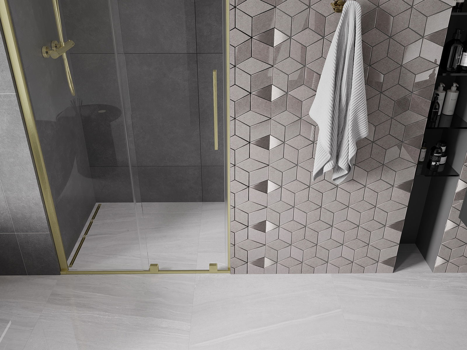 Mexen Velar posuvné sprchové dveře 100 cm, průhledné, zlaté kartáčované - 871-100-000-01-55