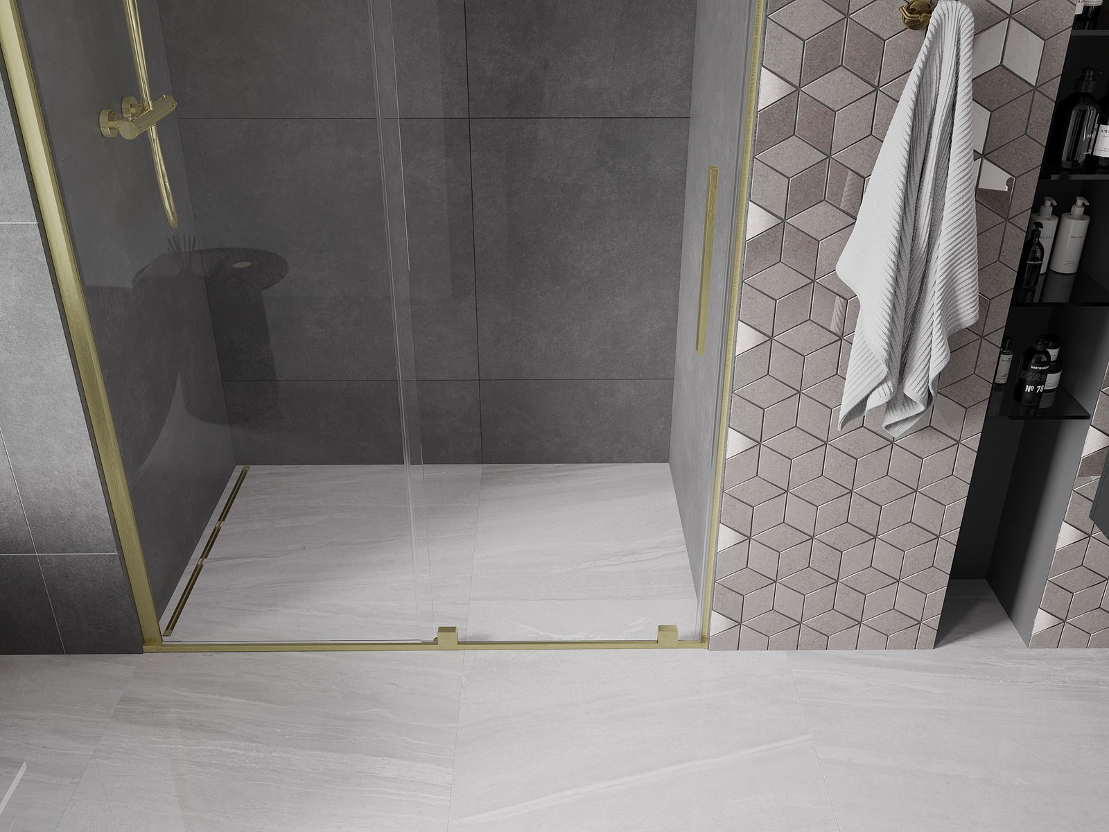 Mexen Velar posuvné sprchové dveře 150 cm, transparentní, kartáčovaná zlatá - 871-150-000-01-55