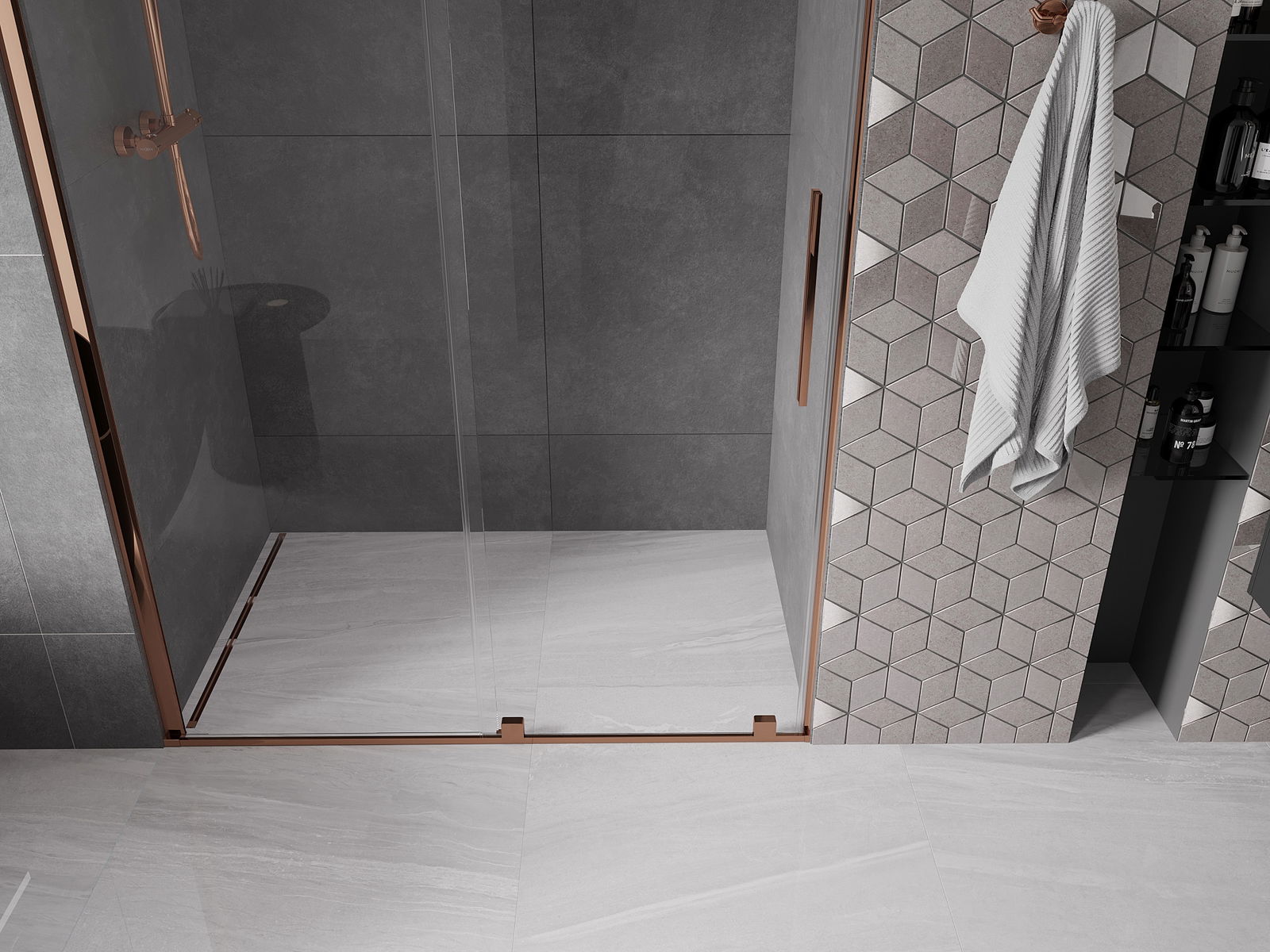Praktický a pohodlný držák je vyroben z nerezové oceli. Moderní tvar ve spojení s povrchovou úpravou sladěnou s barvou profilů dodává celku moderní a stylový vzhled, zdůrazňující estetiku každé koupelny.