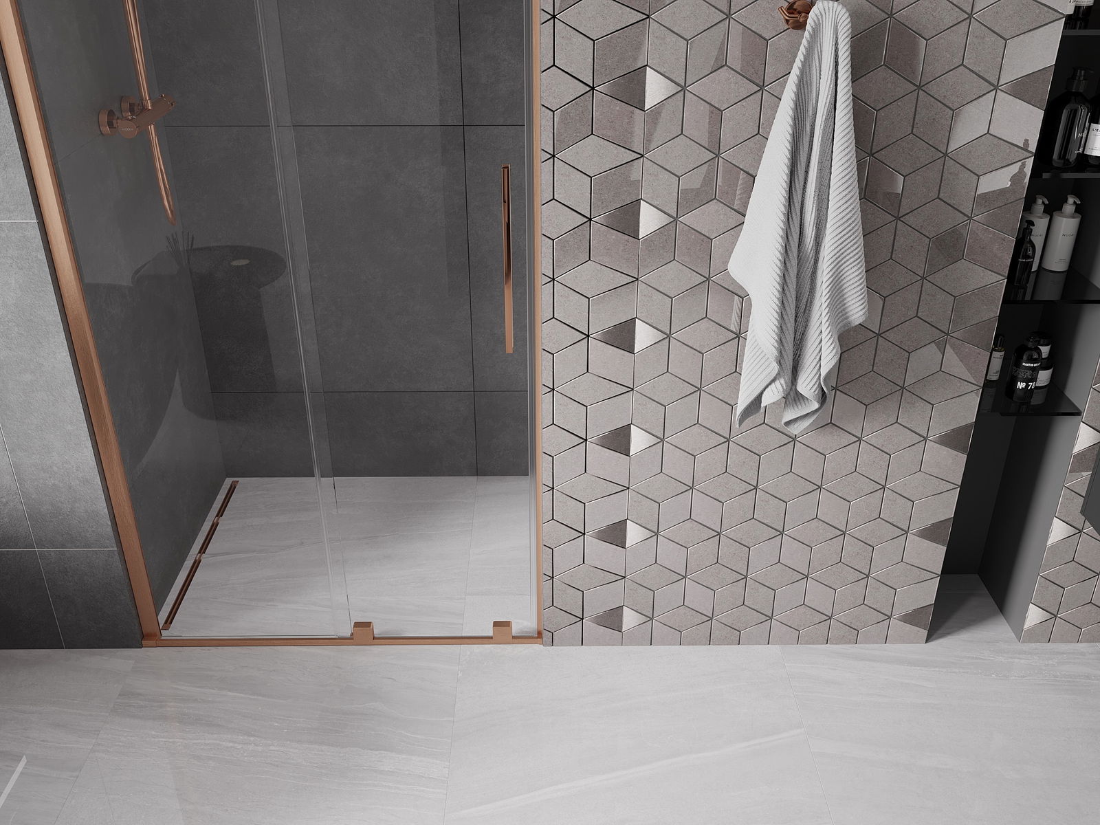 Mexen Velar posuvné sprchové dveře 110 cm, transparentní, kartáčovaná měď - 871-110-000-01-65
