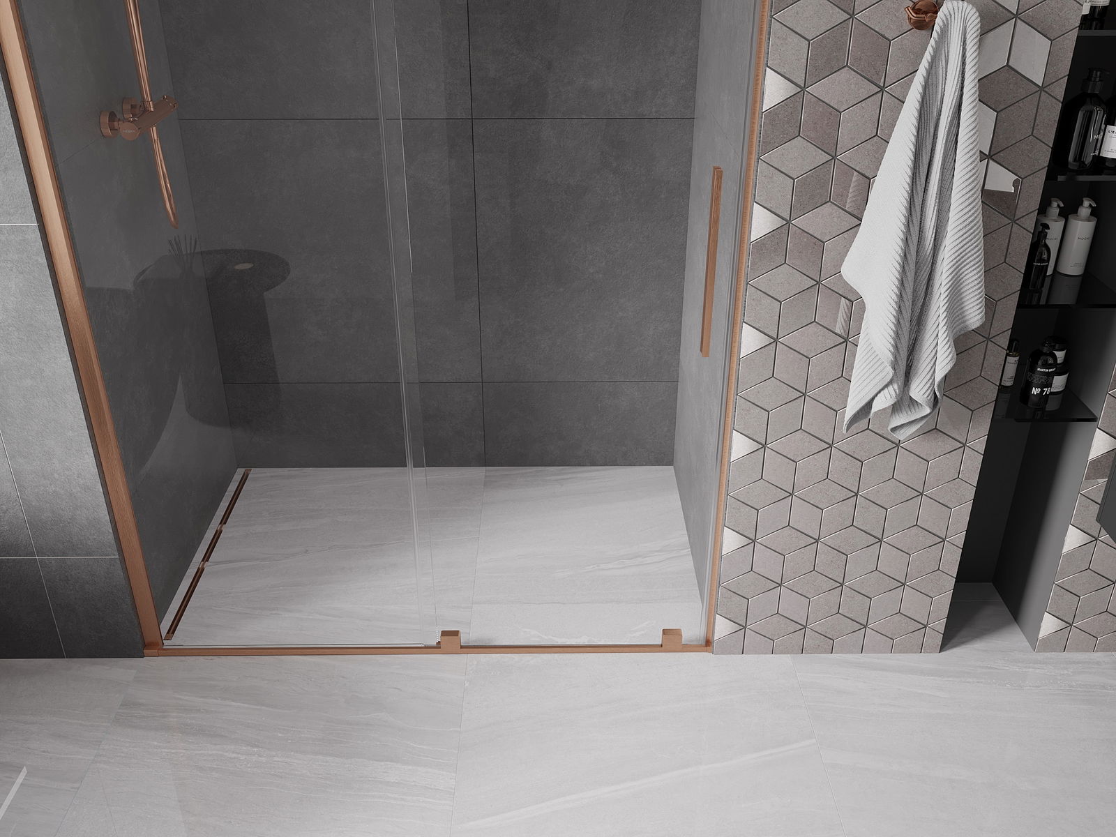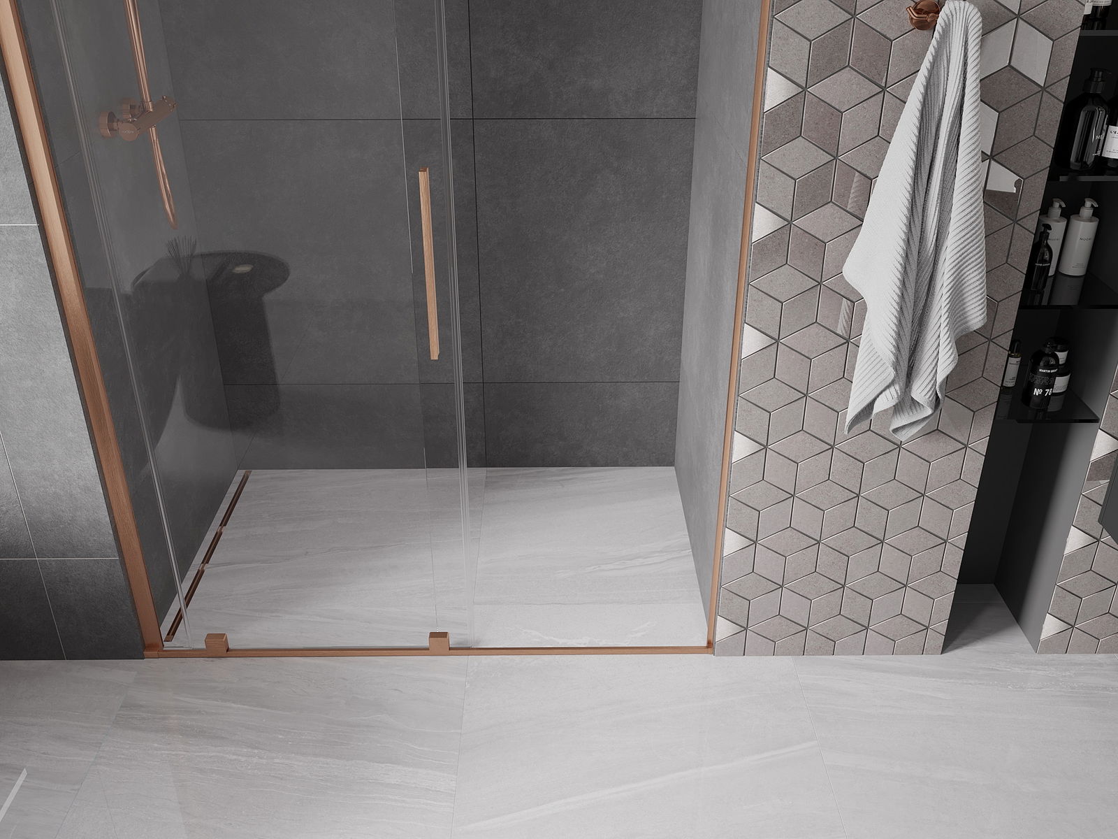 Praktický a pohodlný držák je vyroben z nerezové oceli. Moderní tvar ve spojení s povrchovou úpravou sladěnou s barvou profilů dodává celku moderní a stylový vzhled, zdůrazňující estetiku každé koupelny.