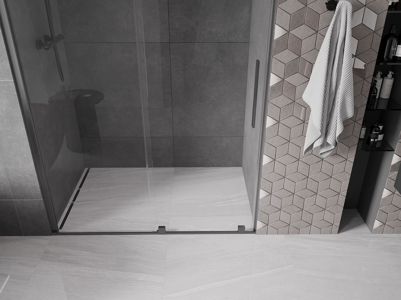 Mexen Velar sprchové dveře posuvné 130 cm, průhledné, kartáčovaná tmavě šedá - 871-130-000-01-66